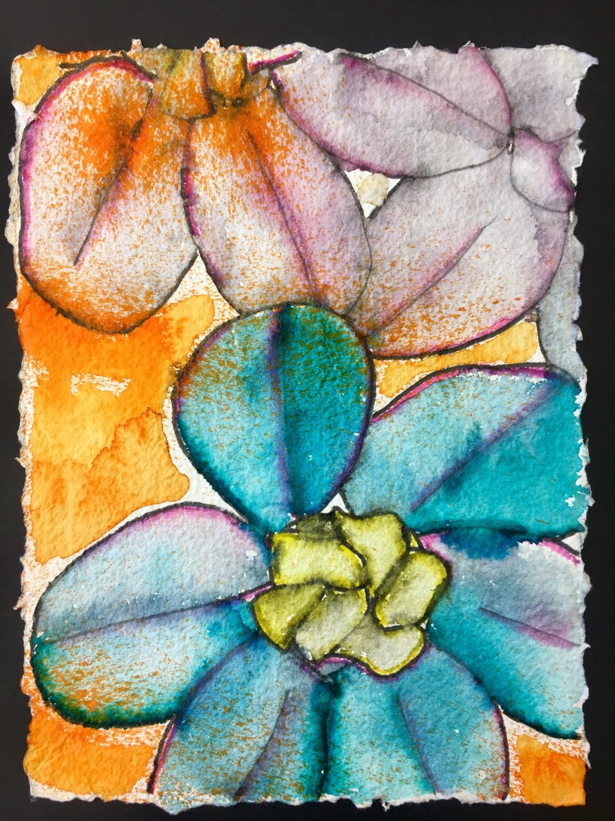 Botanical Oil Pastel and Watercolor Paintings
