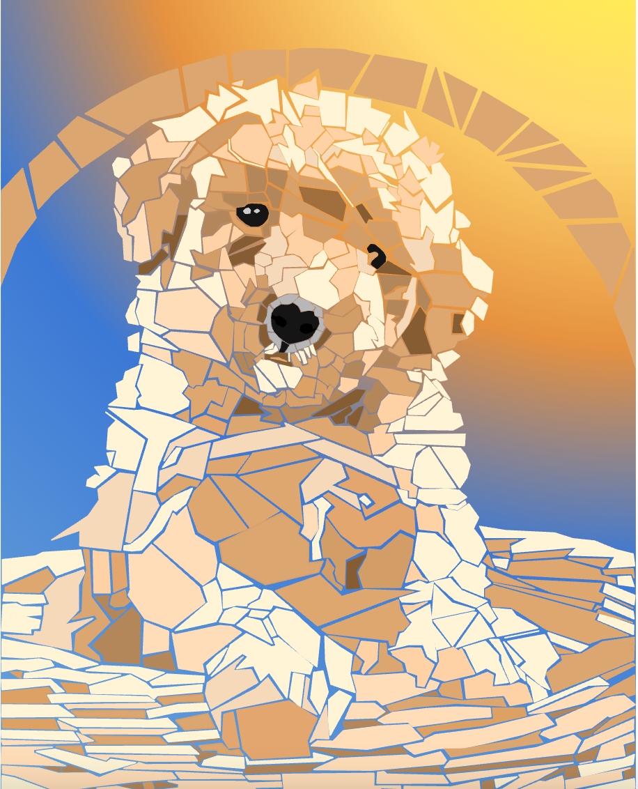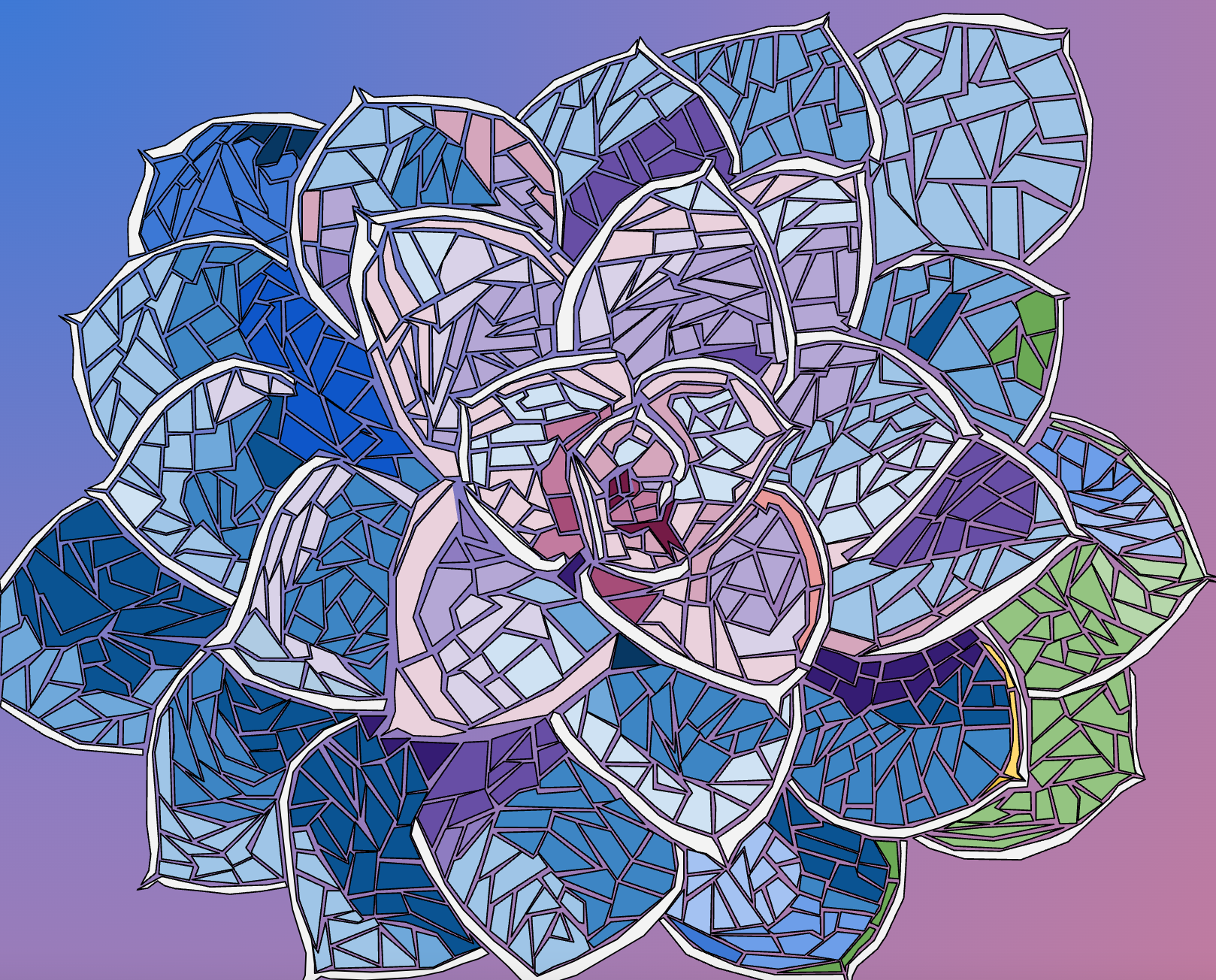 This digital art assignment was a winner with both my hybrid and remote students! This is easily doable as a fully remote lesson if students have a Google Drive account. Using the program “Google Draw”, we drew colored “tiles” over an image of our choosing, piecing them together much like how a traditional mosaic is an arrangement of stone or ceramic tiles. When we finished creating our digital tiles, we deleted the photo, leaving just our drawn segments. We added a colored background, either a solid color or a custom designed gradient. There are many tutorials online for how to do this technique. I had my students watch THIS ONE, by Janette Islas.