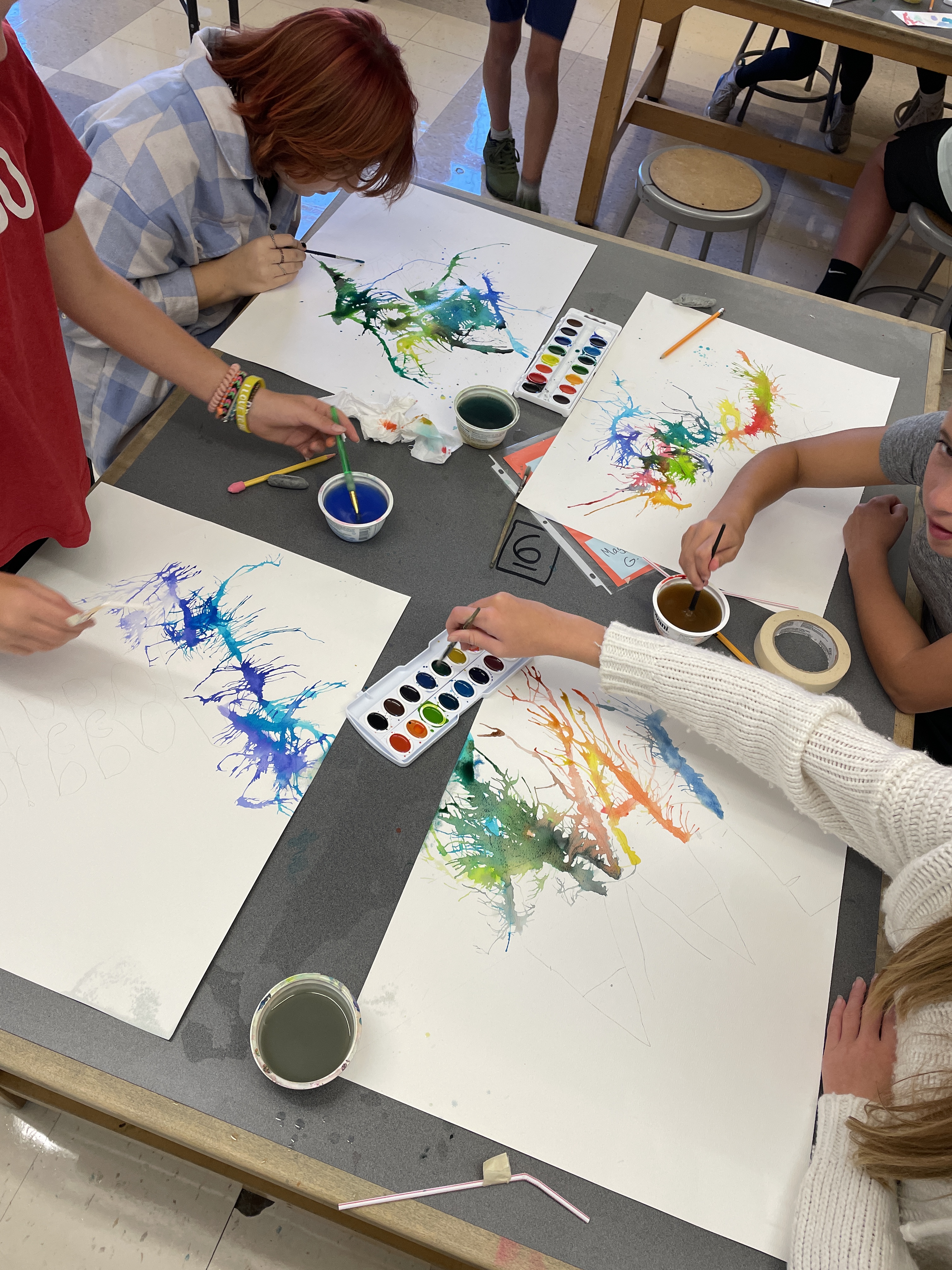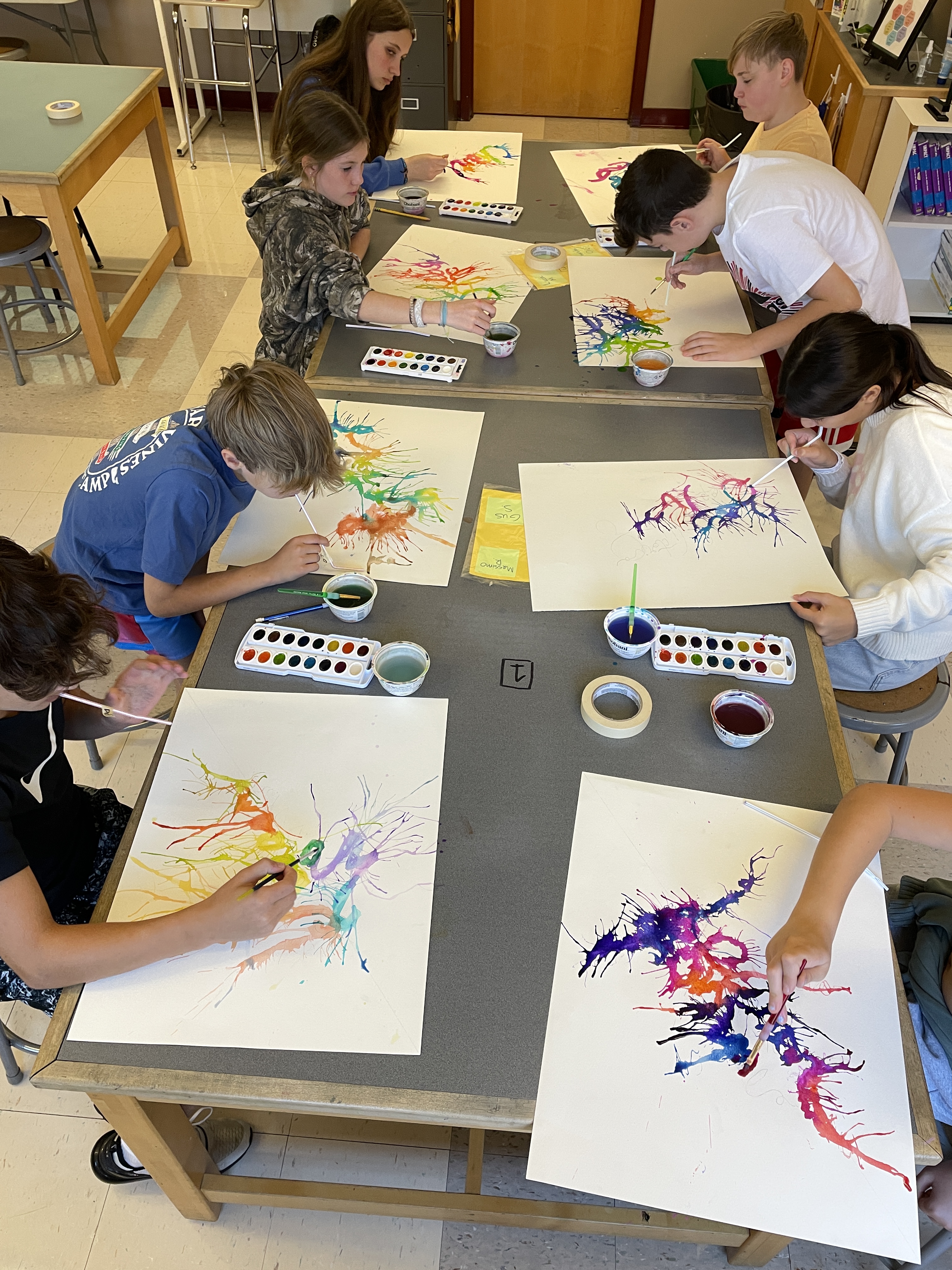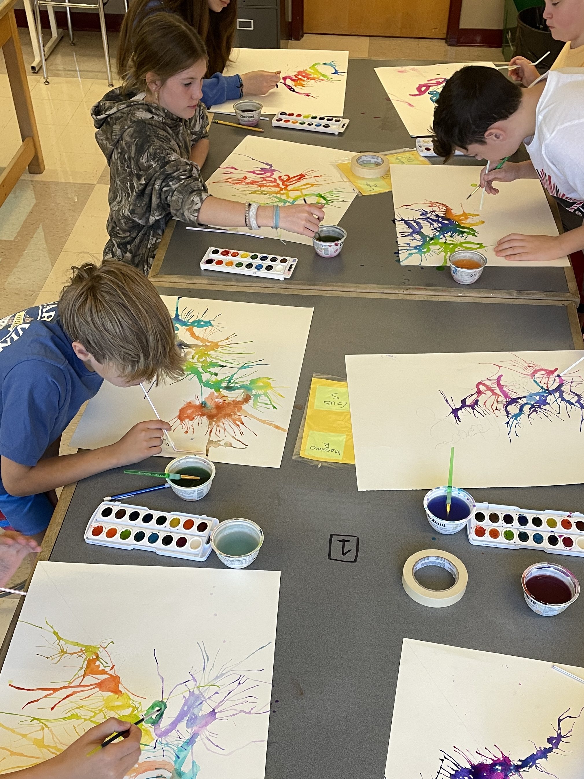 The next class, we use watercolors and straws to create fun splattered effects!