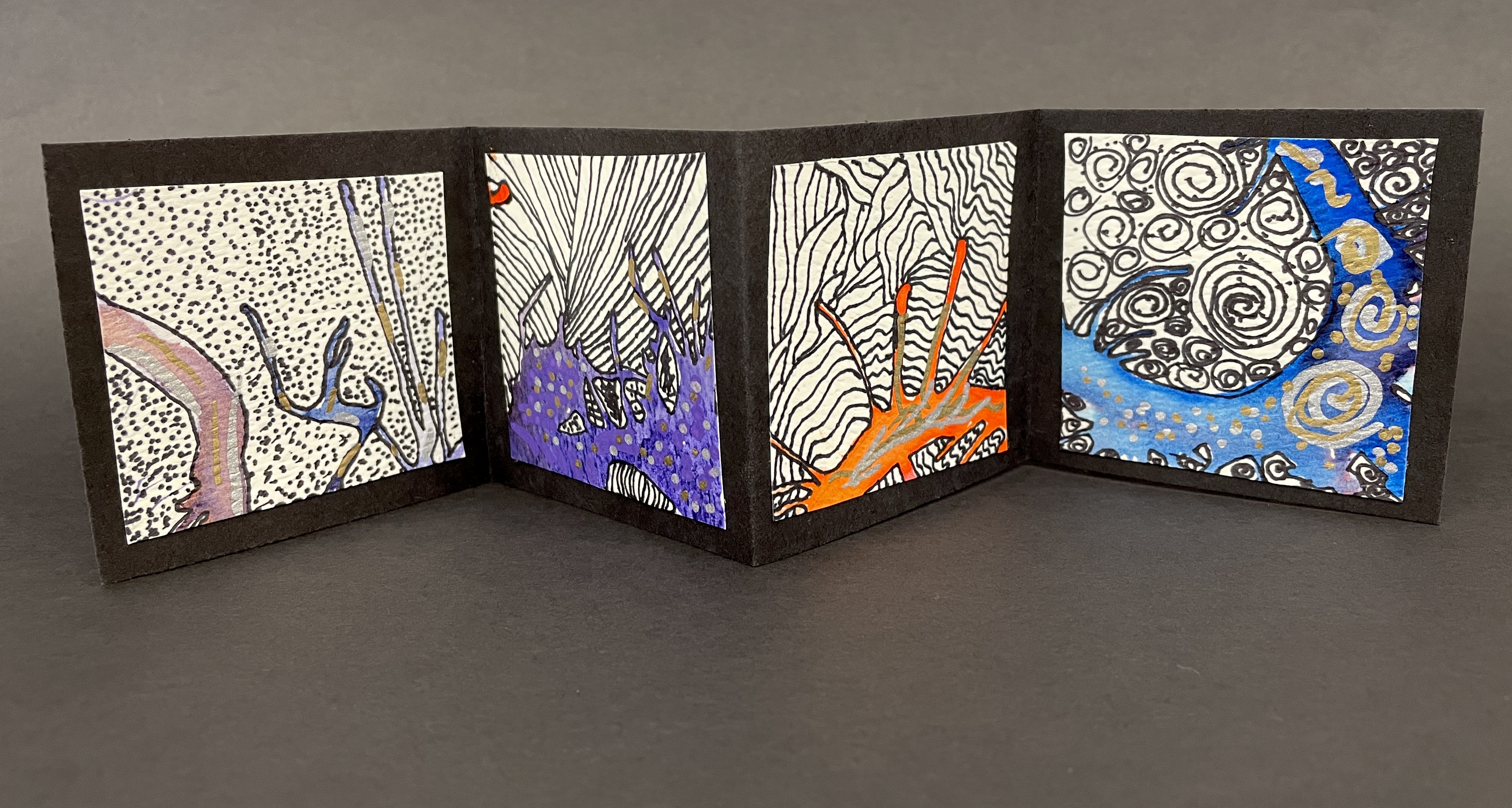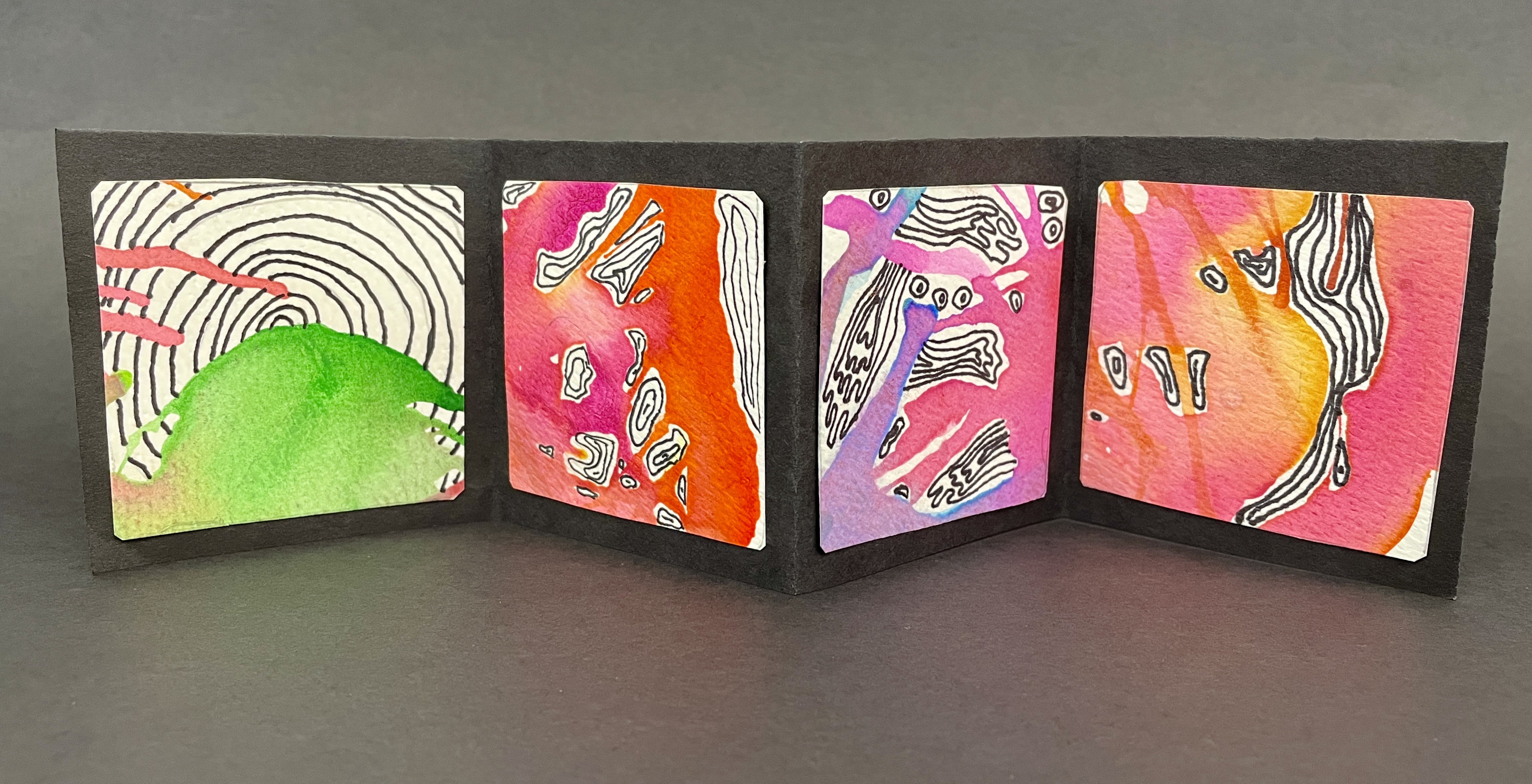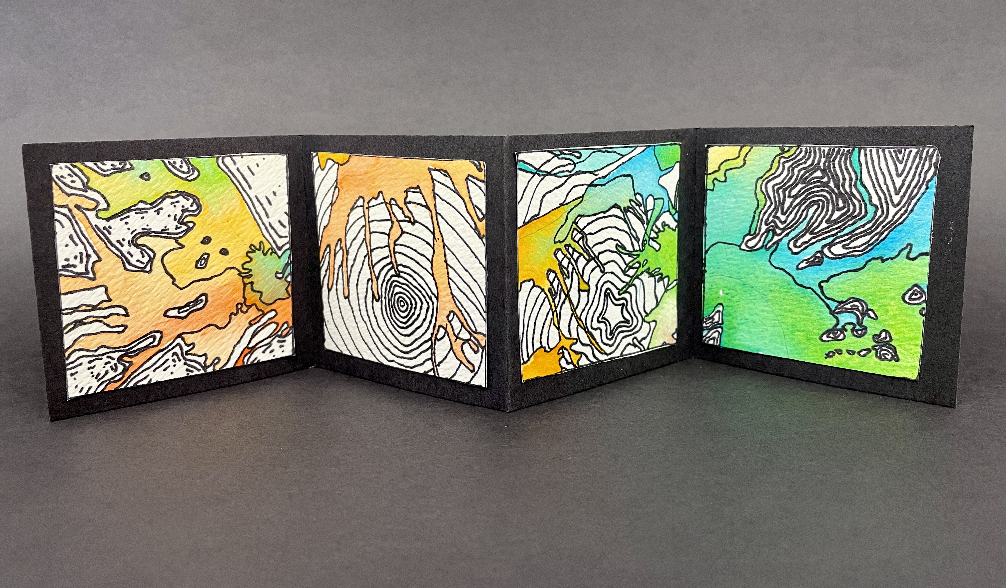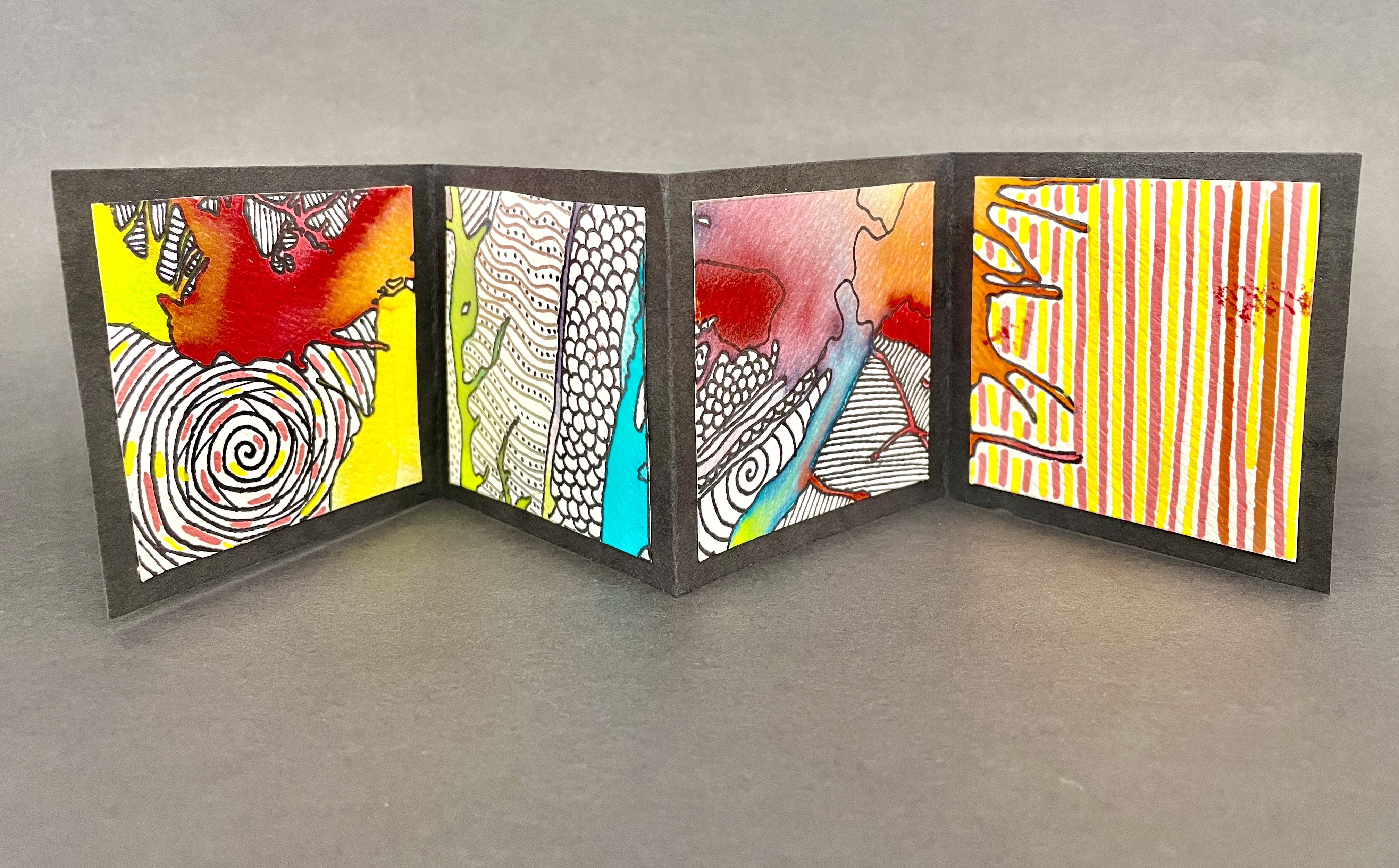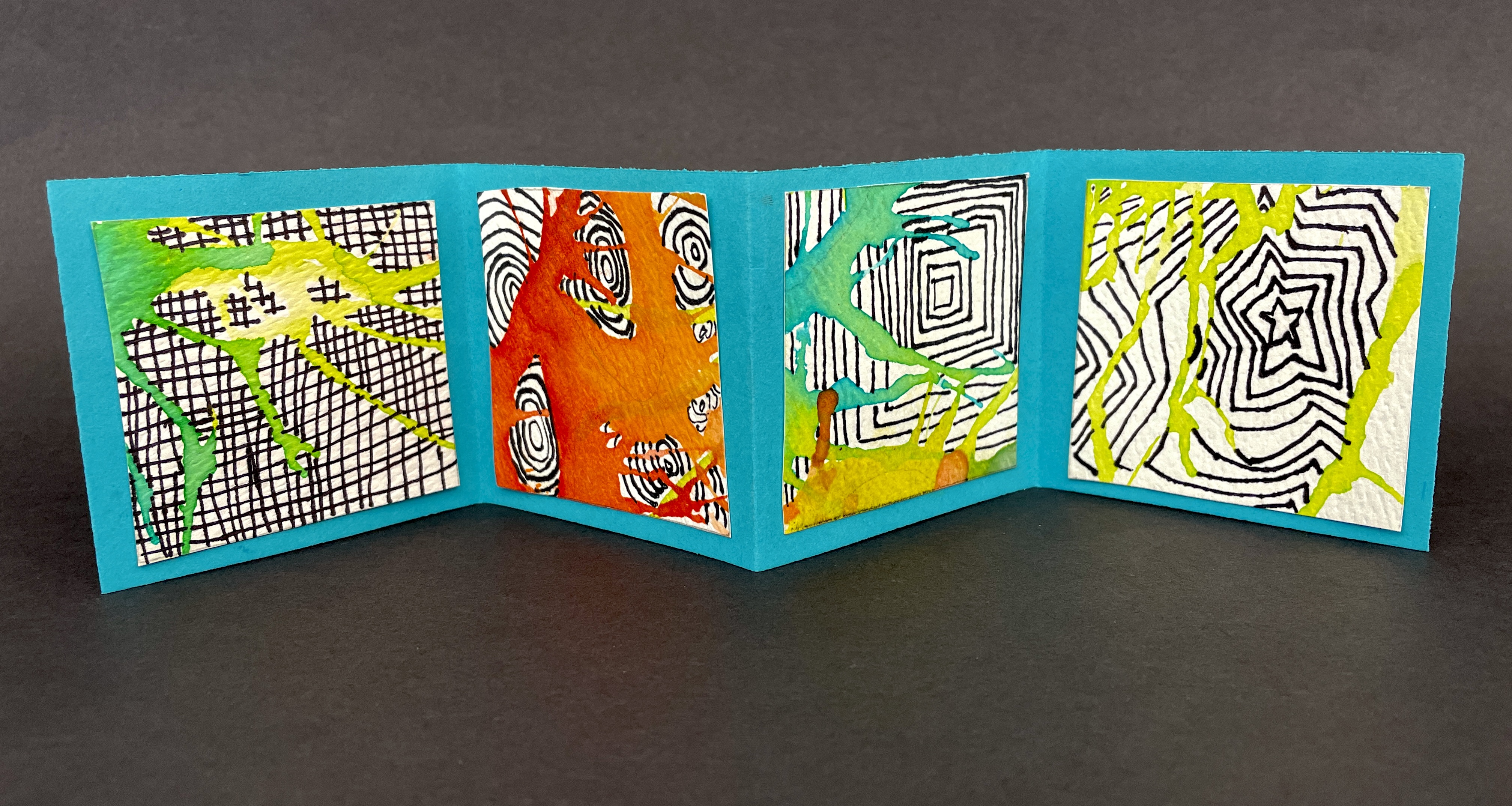 BONUS PROJECT! If students had time, they used 2” Square templates and created four embellished mini-squares in areas that fell outside of their main composition. We then made simple accordion books to showcase these little miniature works of art!