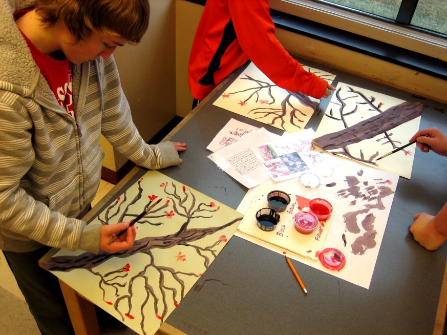 Masking Tape Birch Tree Paintings, “Fall Step-by-Step”