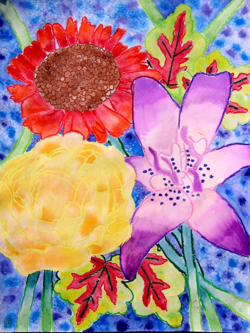 Botanical Oil Pastel and Watercolor Paintings