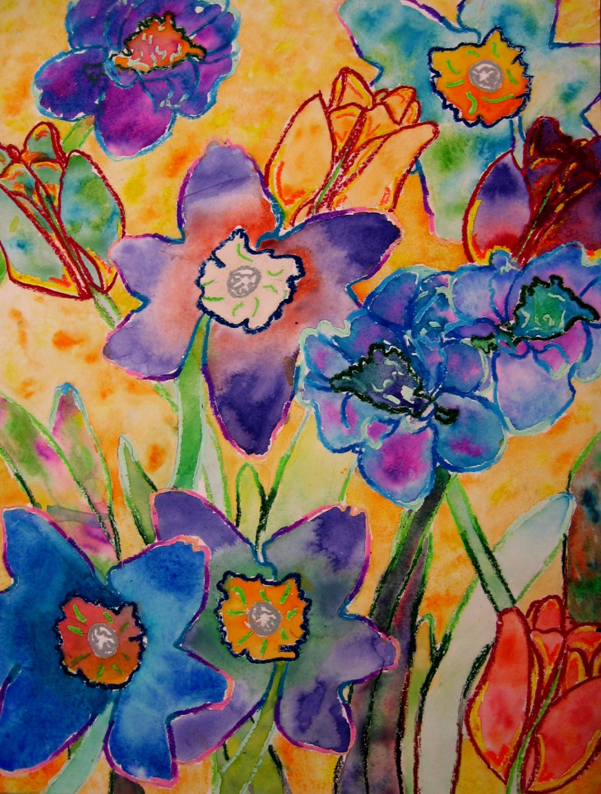 Botanical Oil Pastel and Watercolor Paintings