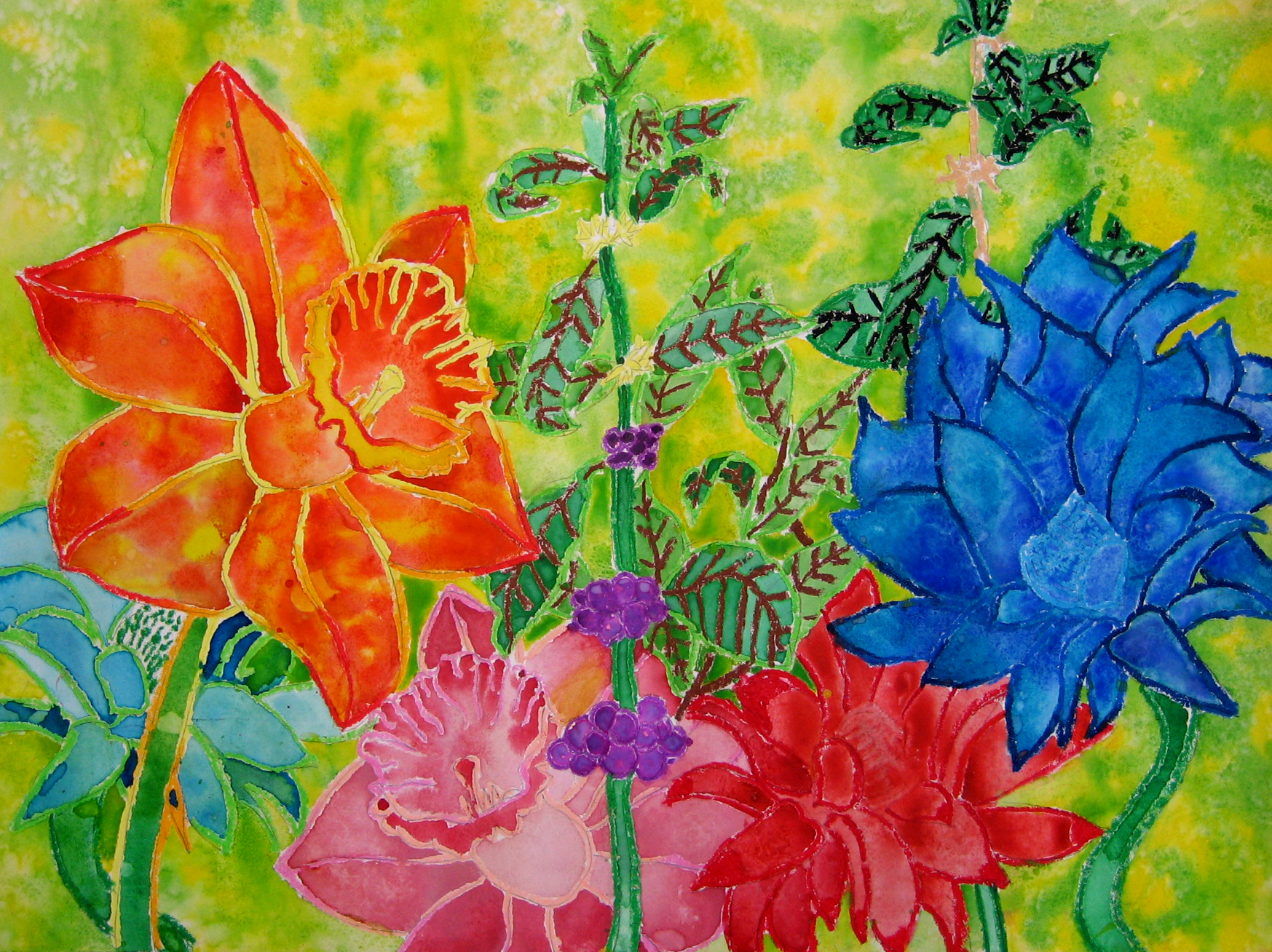 Botanical Oil Pastel and Watercolor Paintings