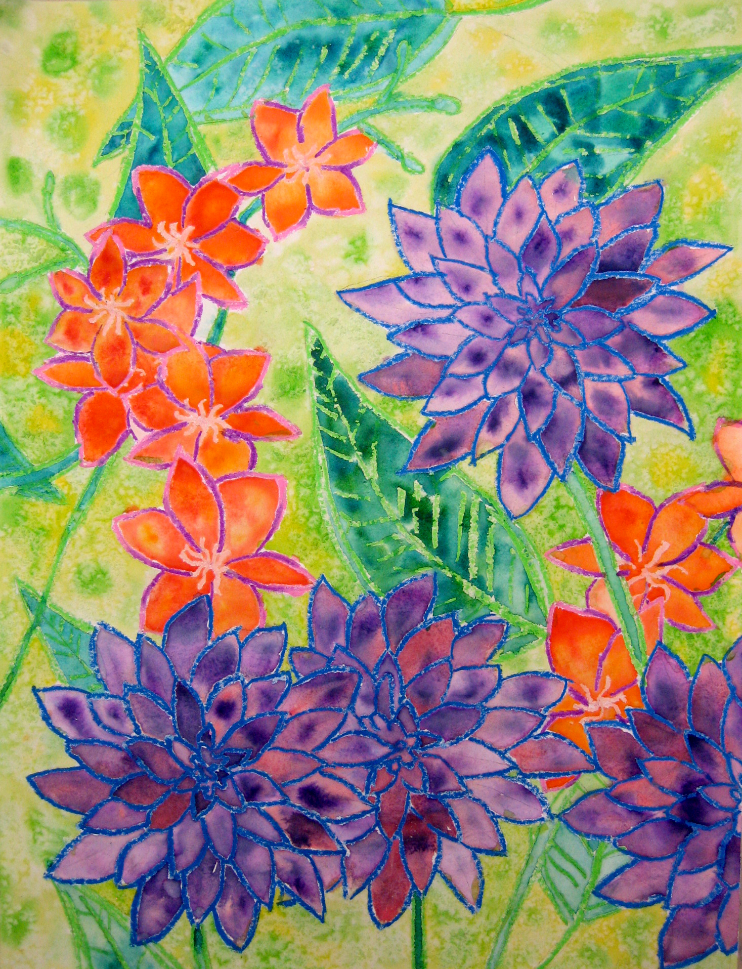 Botanical Oil Pastel and Watercolor Paintings