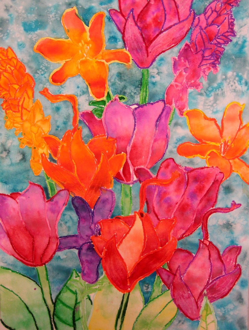 Botanical Oil Pastel and Watercolor Paintings