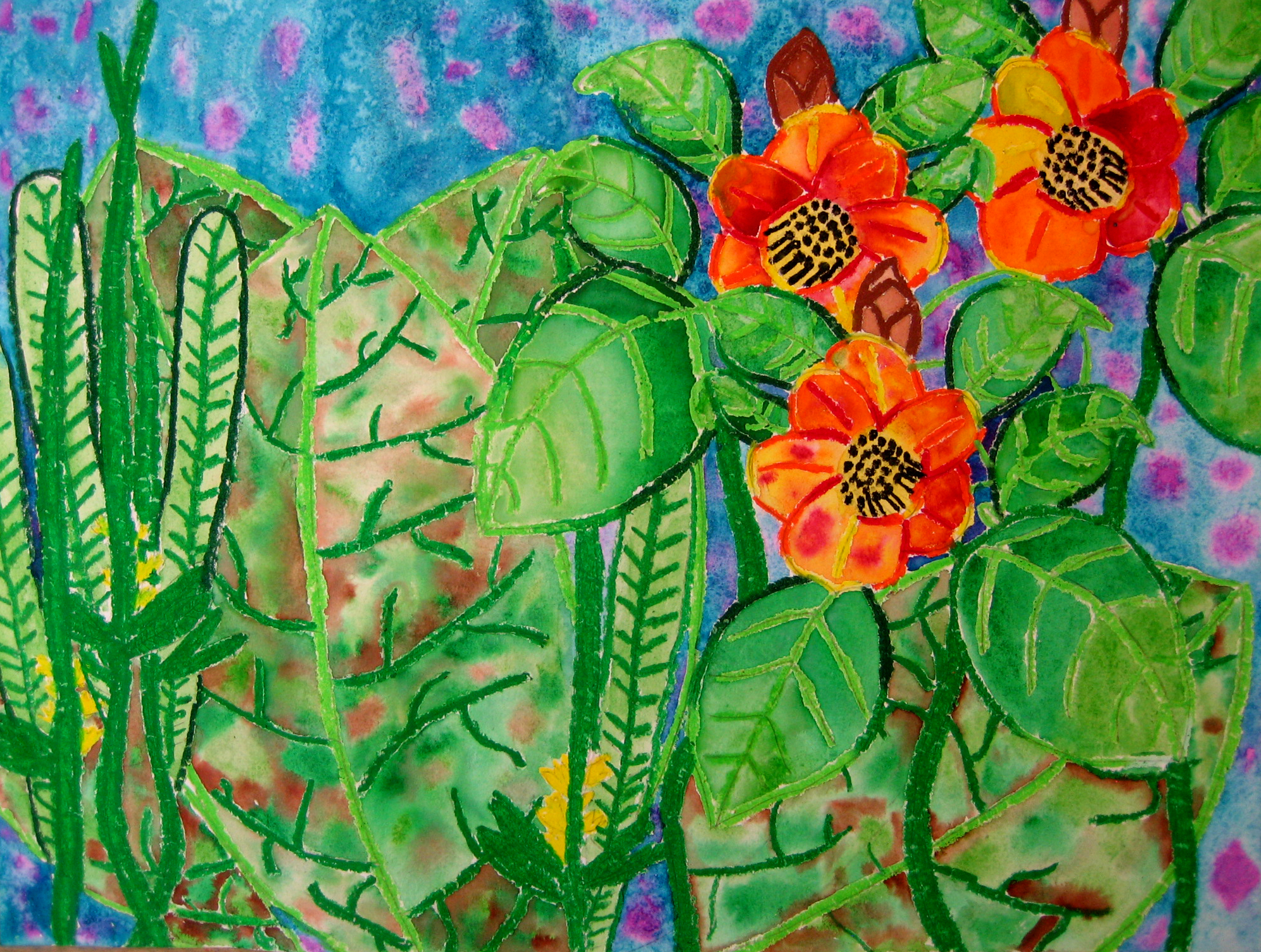 Botanical Oil Pastel and Watercolor Paintings