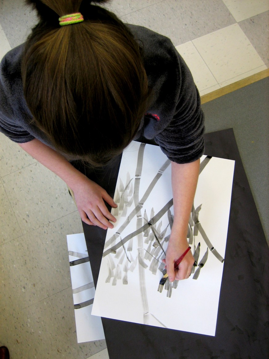 Masking Tape Birch Tree Paintings, “Fall Step-by-Step”
