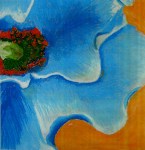 We began this lesson by looking at the large flower paintings of American painter Georgia O’Keeffe, (1887-1986). We discussed her style in terms of her large compositions, use of minimal backgrounds, and how she often created a sense of abstraction with “extreme close-ups”. Using flower catalogs as reference, each student created a large pencil composition of one or two flowers. We cropped our drawings to help create the “zoomed in” style seen in O’keeffe’s work. Oil pastel was used to add color, and students were encouraged to utilize blending, mixing and layering techniques to achieve a close color match to the reference photo.