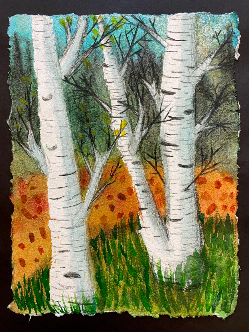 Masking Tape Birch Tree Paintings, “Fall Step-by-Step”