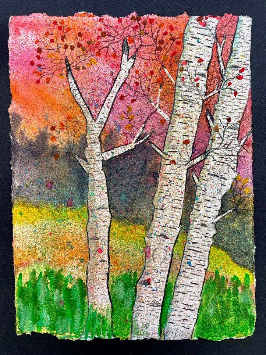 Masking Tape Birch Tree Paintings, “Fall Step-by-Step”