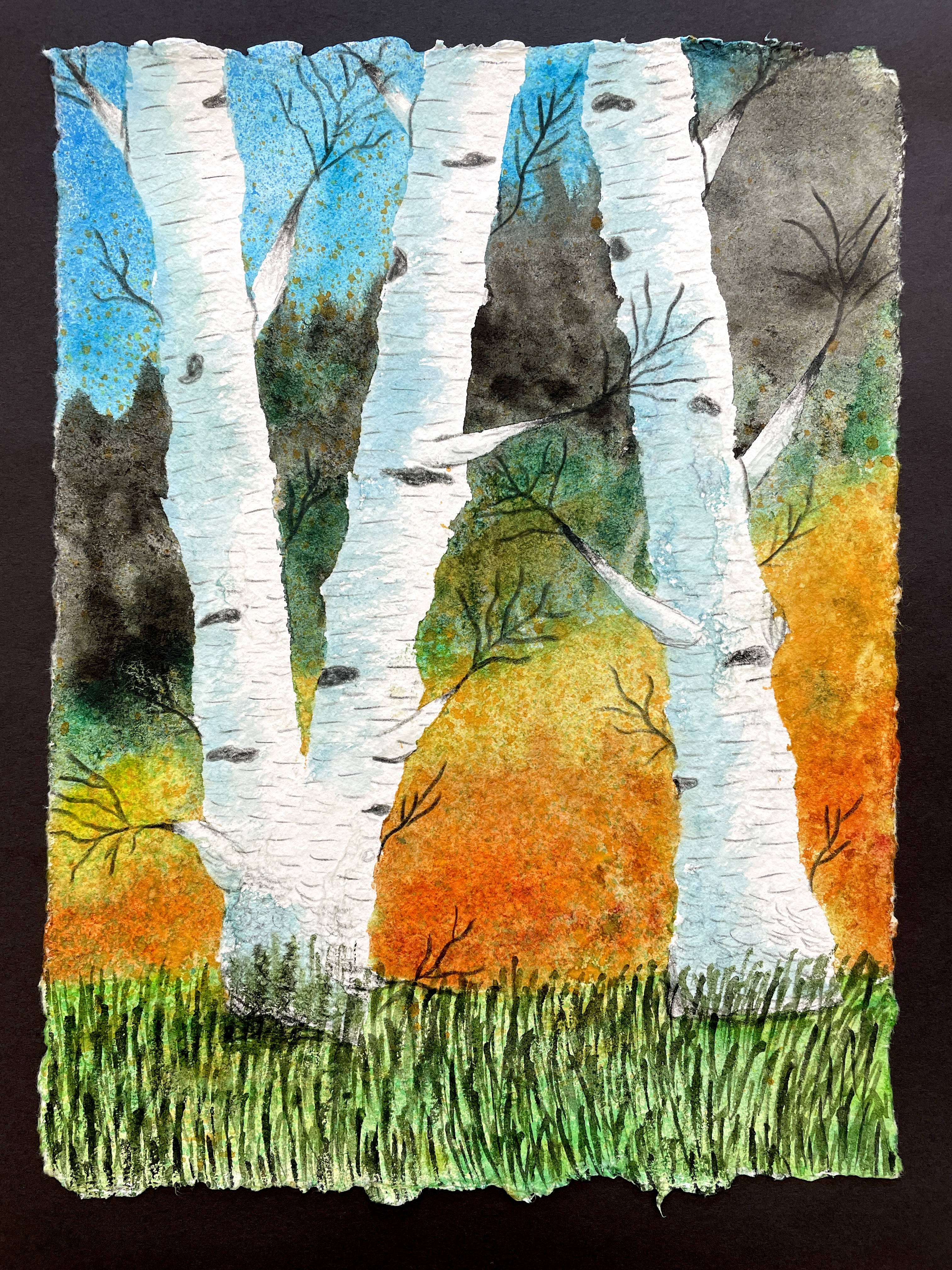 Masking Tape Birch Tree Paintings, “Fall Step-by-Step”