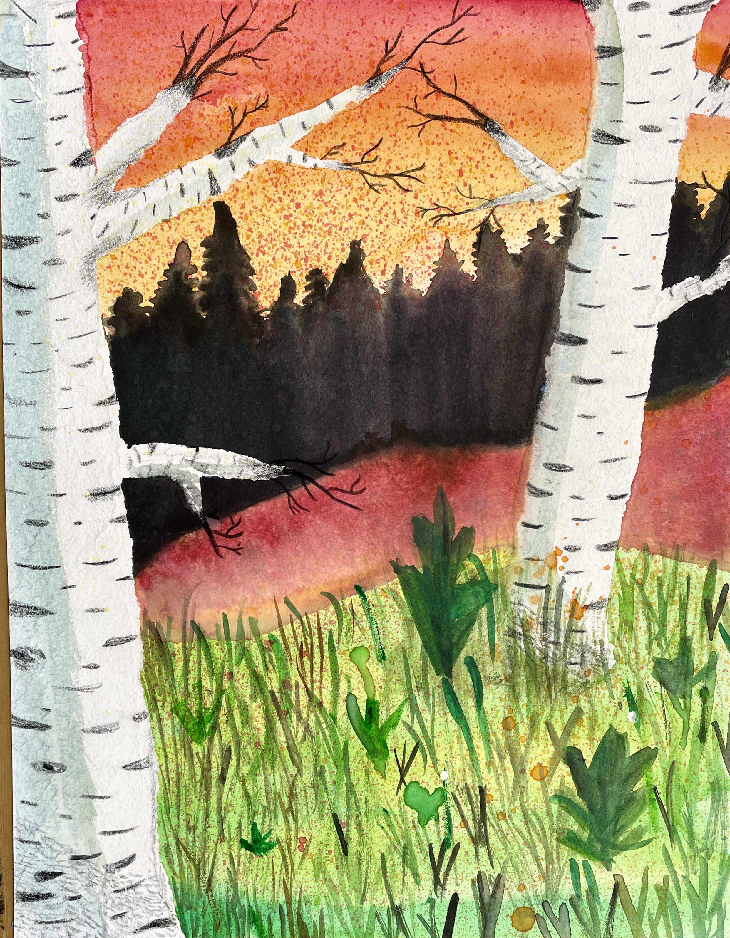 Masking Tape Birch Tree Paintings, “Fall Step-by-Step”