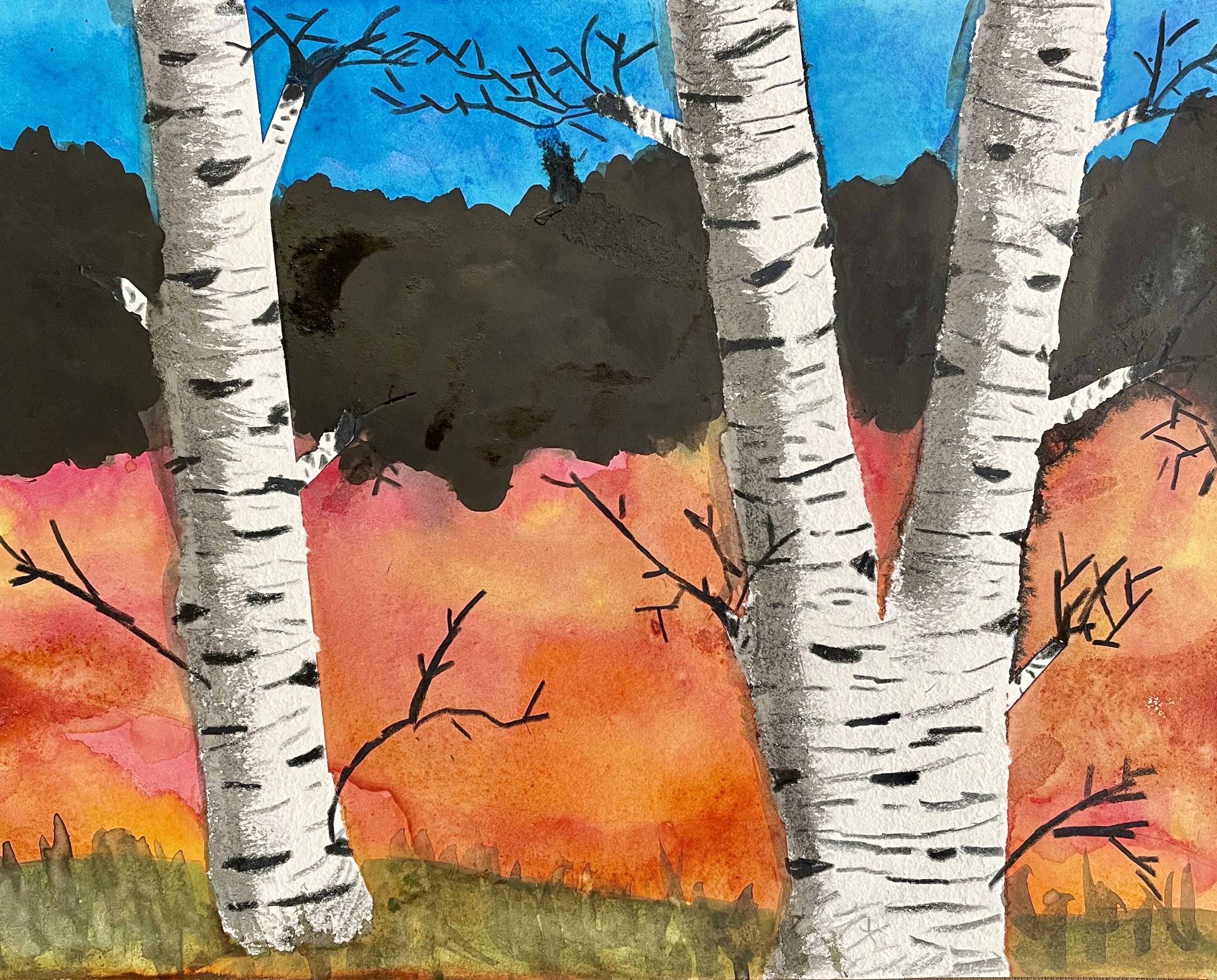 Masking Tape Birch Tree Paintings, “Fall Step-by-Step”
