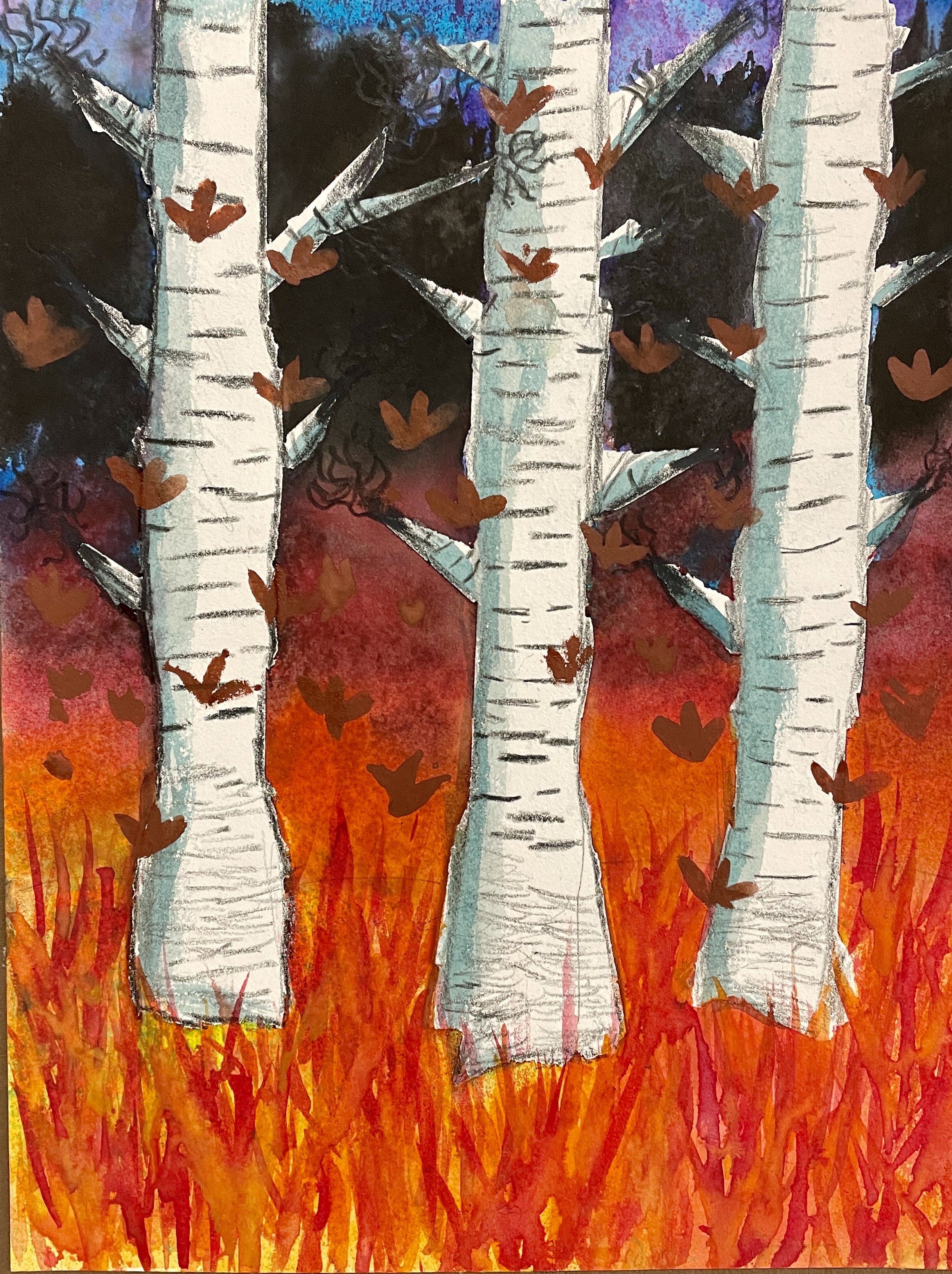 Masking Tape Birch Tree Paintings, “Fall Step-by-Step”