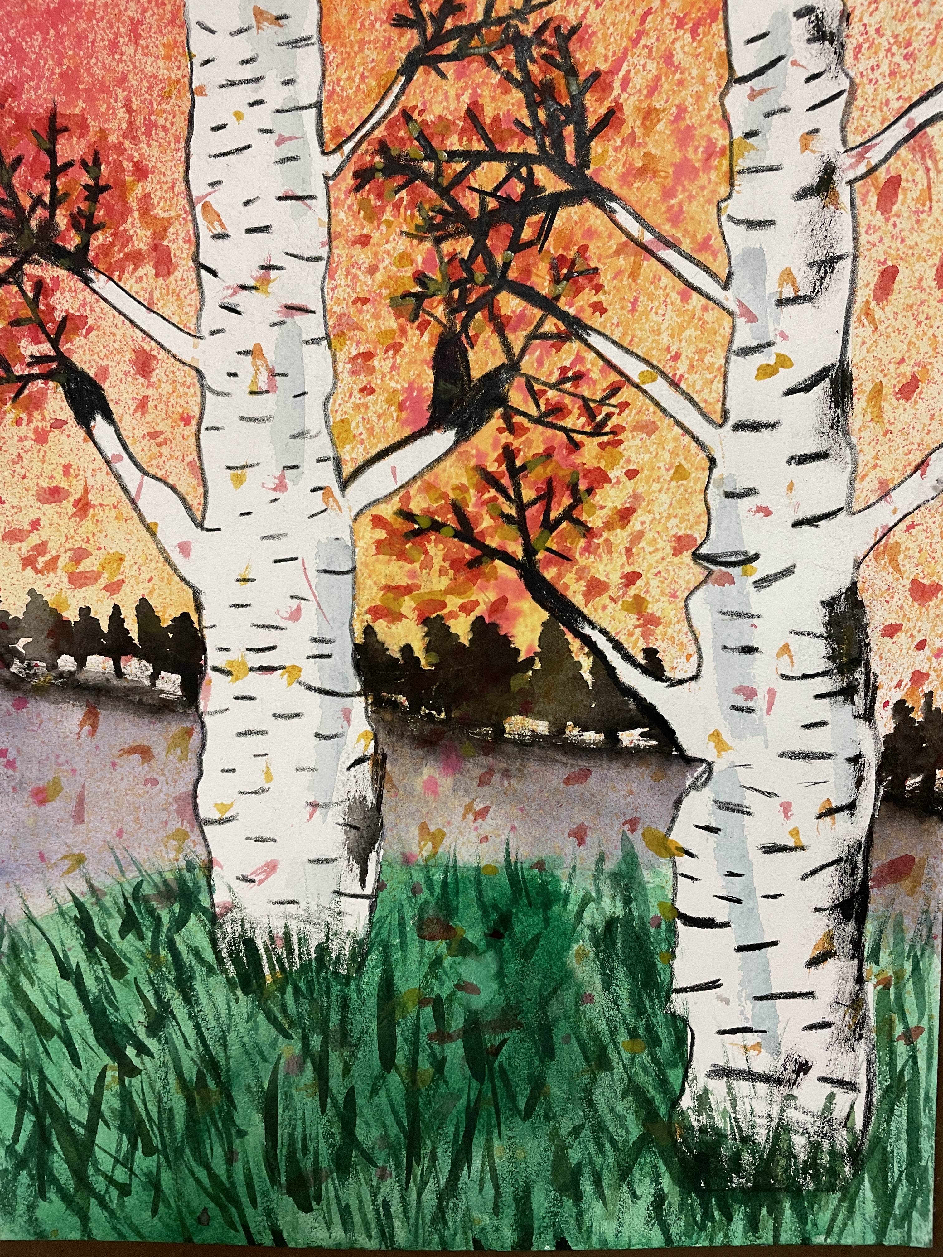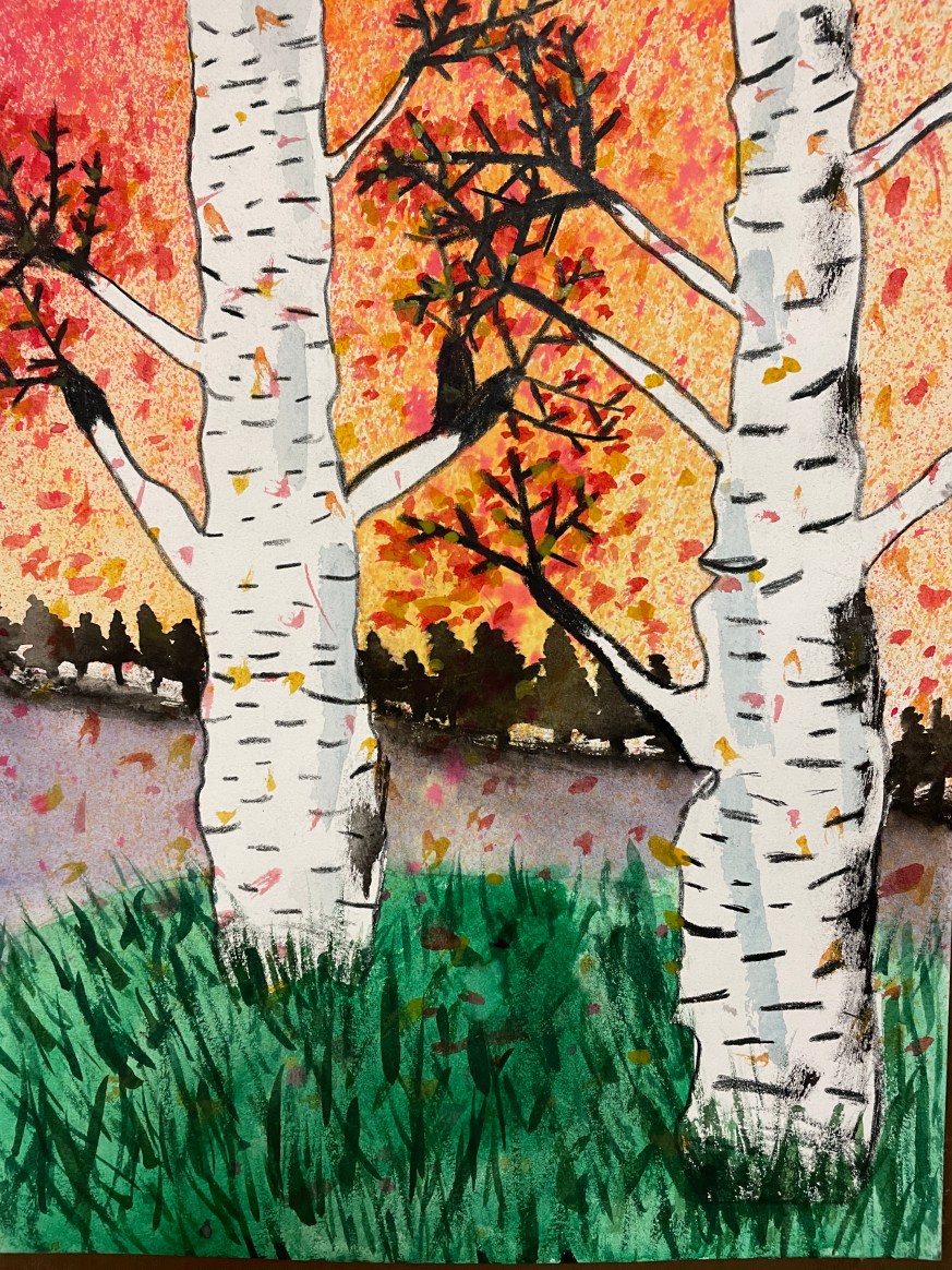 Masking Tape Birch Tree Paintings, “Fall Step-by-Step”