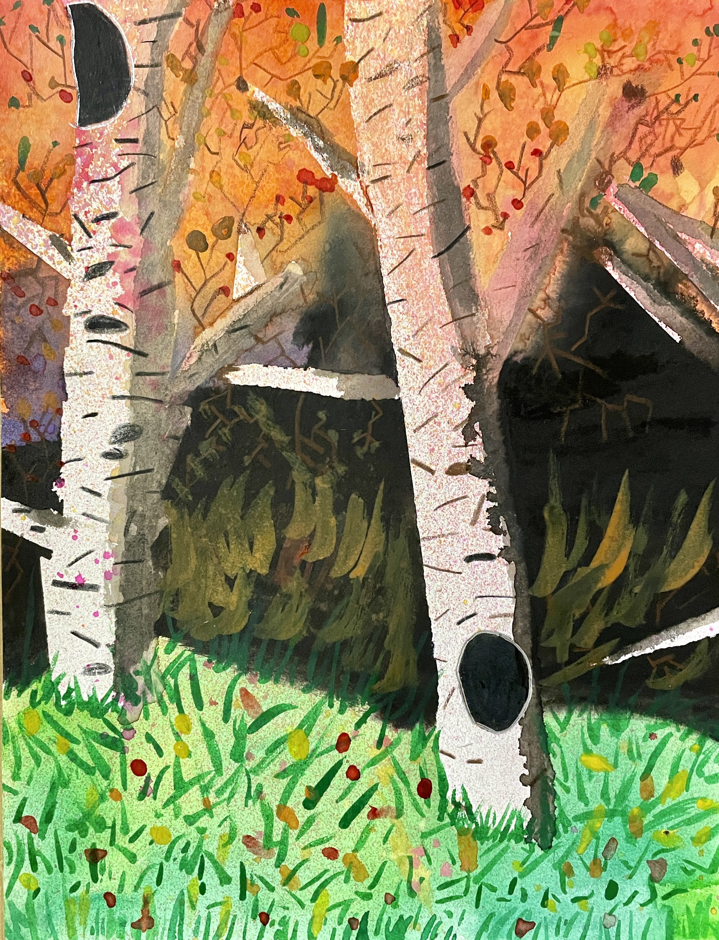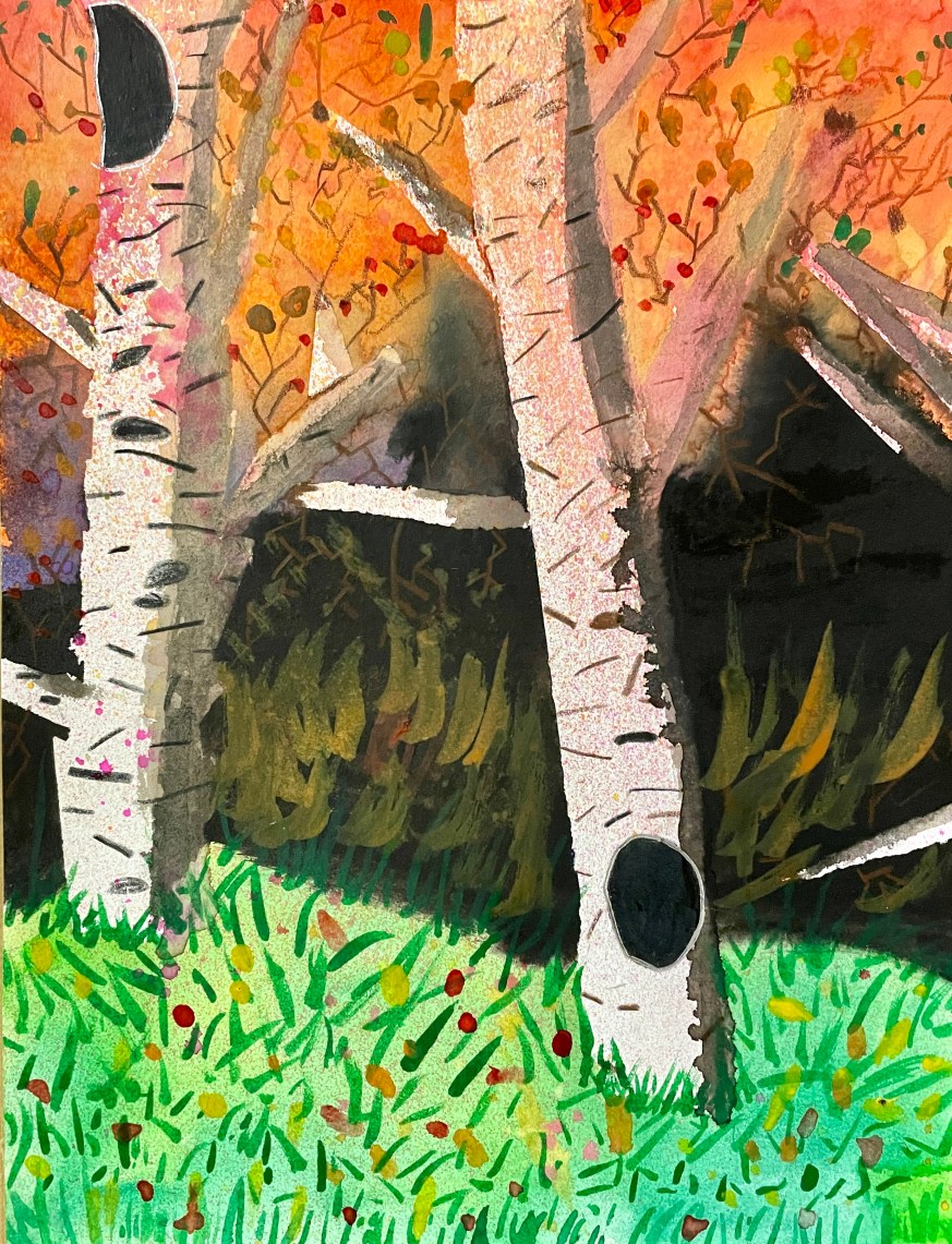 Masking Tape Birch Tree Paintings, “Fall Step-by-Step”