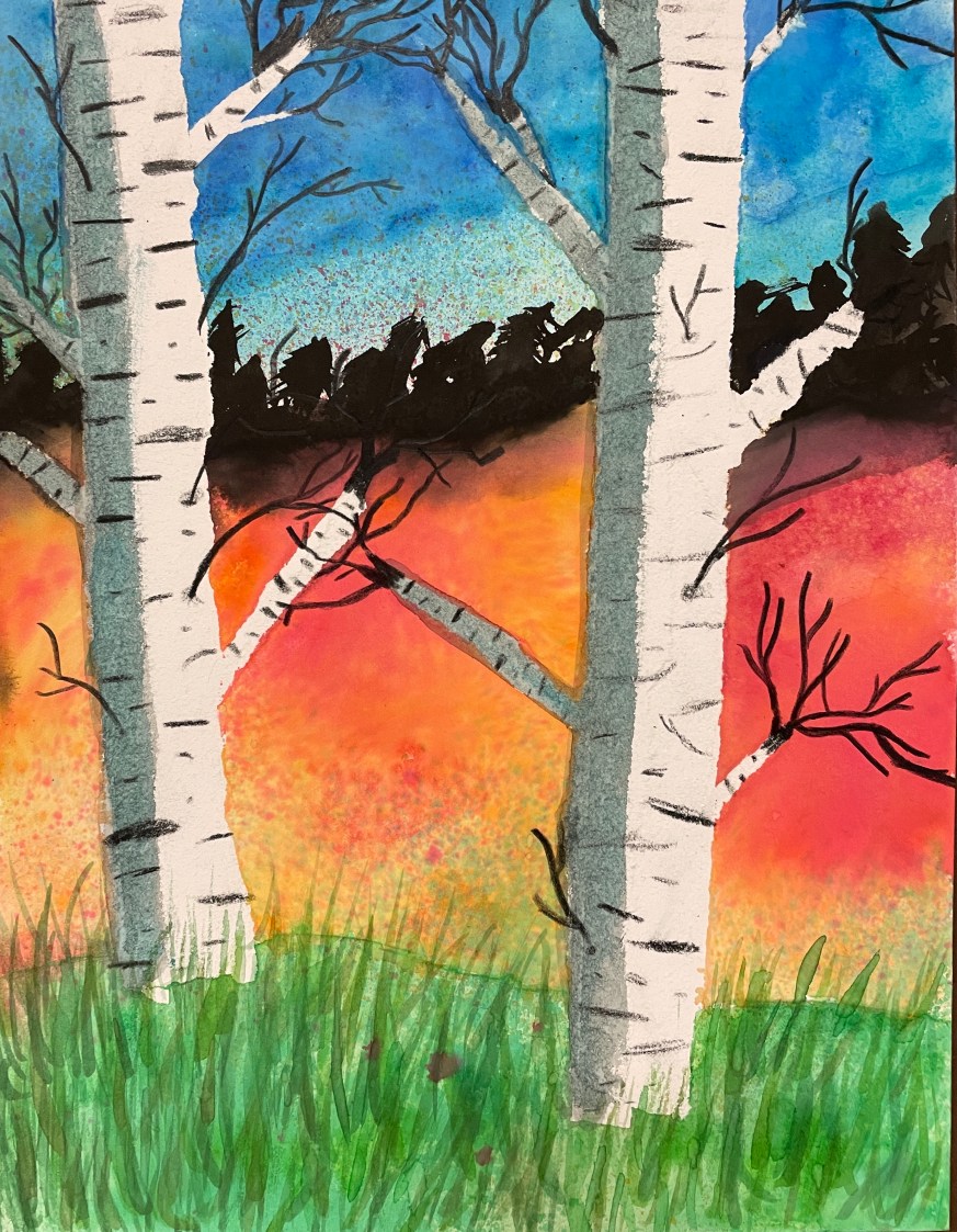 Masking Tape Birch Tree Paintings, “Fall Step-by-Step”