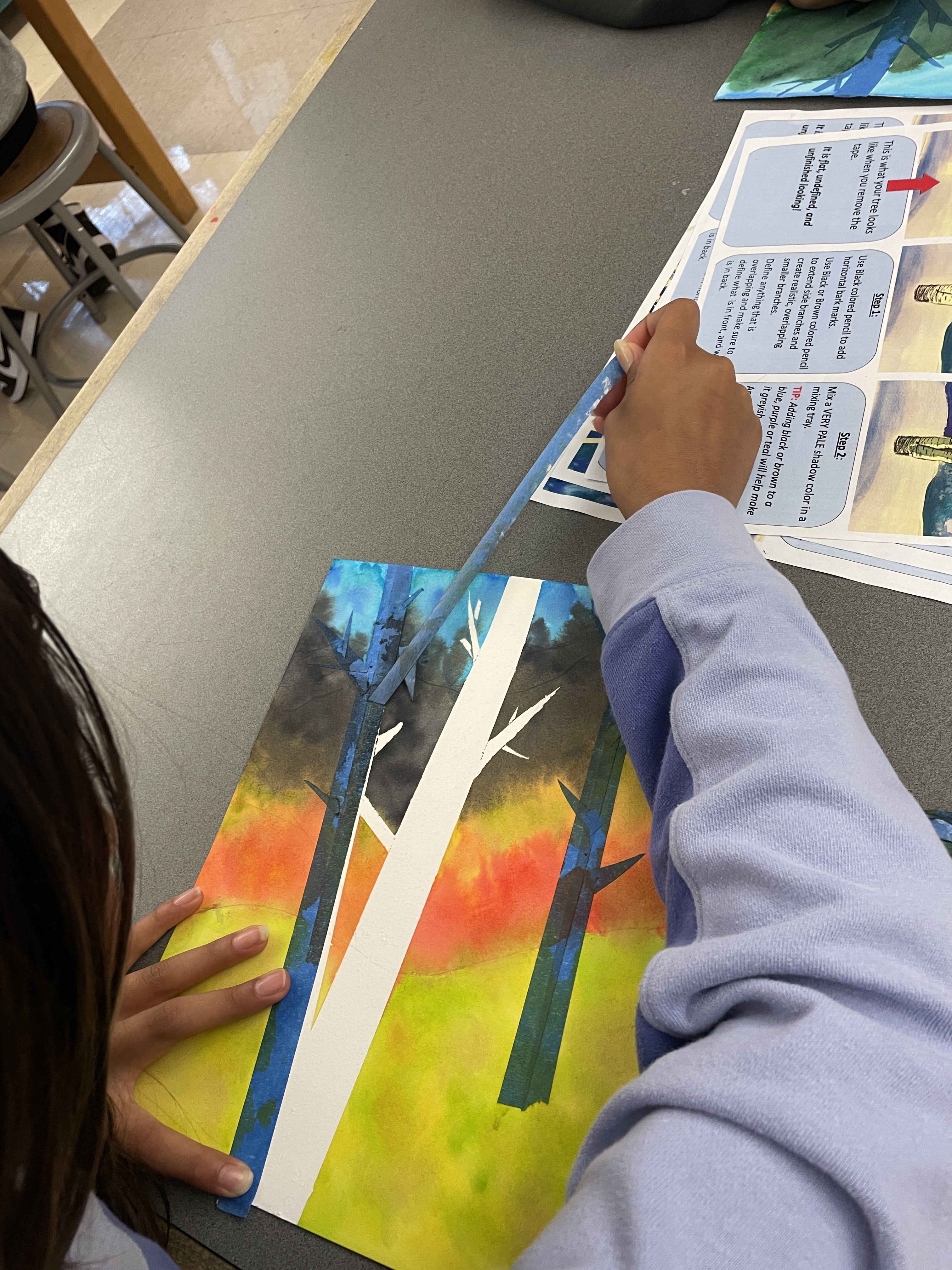 Masking Tape Birch Tree Paintings, “Fall Step-by-Step”