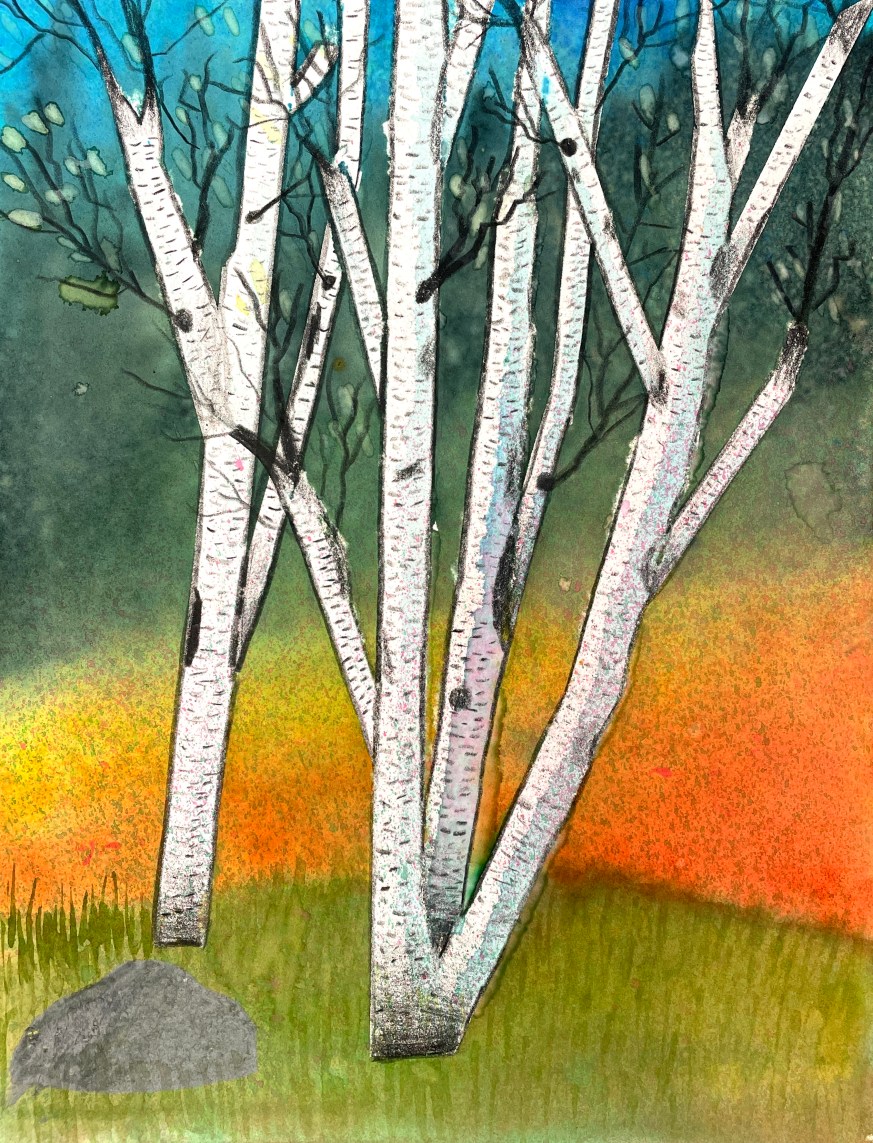 Masking Tape Birch Tree Paintings, “Fall Step-by-Step”