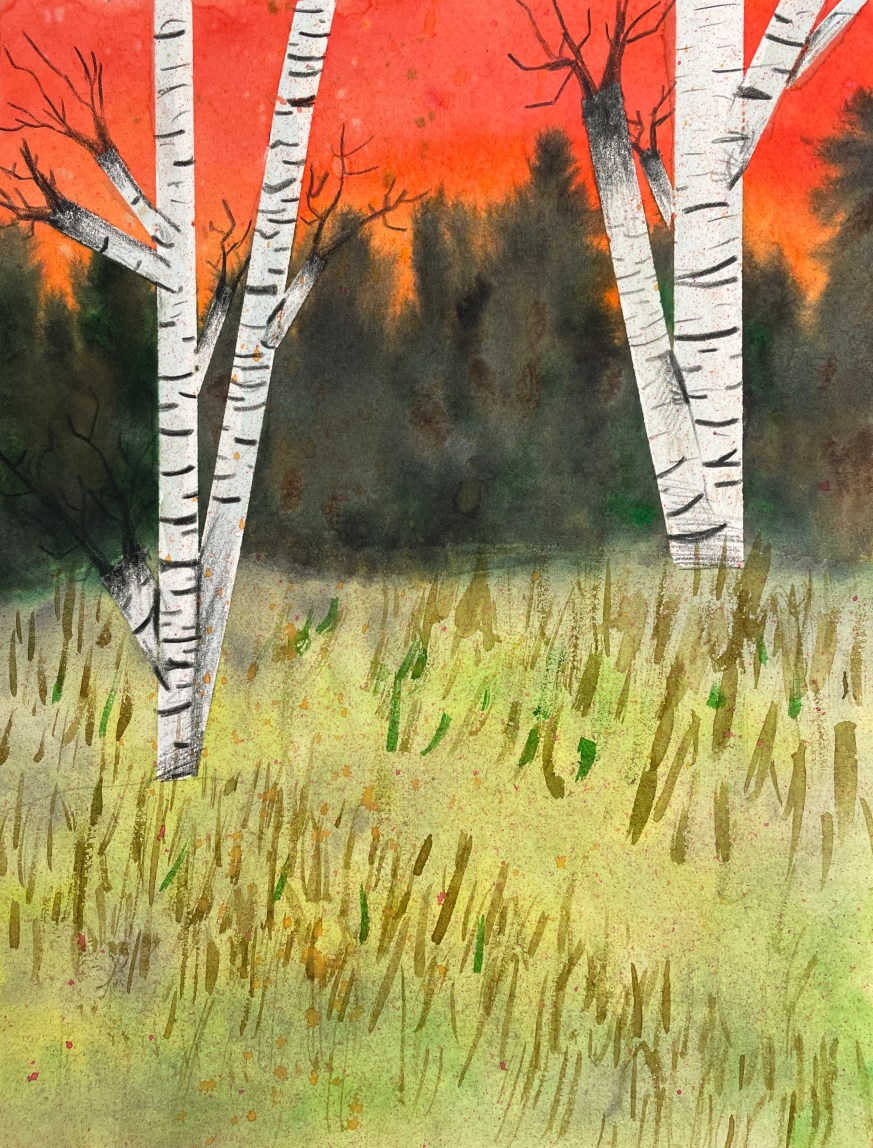 Masking Tape Birch Tree Paintings, “Fall Step-by-Step”