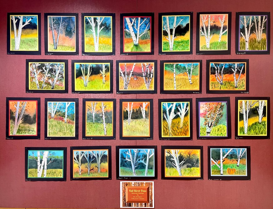 Masking Tape Birch Tree Paintings, “Fall Step-by-Step”