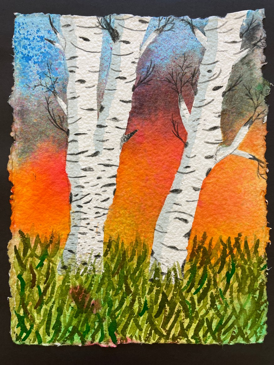 Masking Tape Birch Tree Paintings, “Fall Step-by-Step”