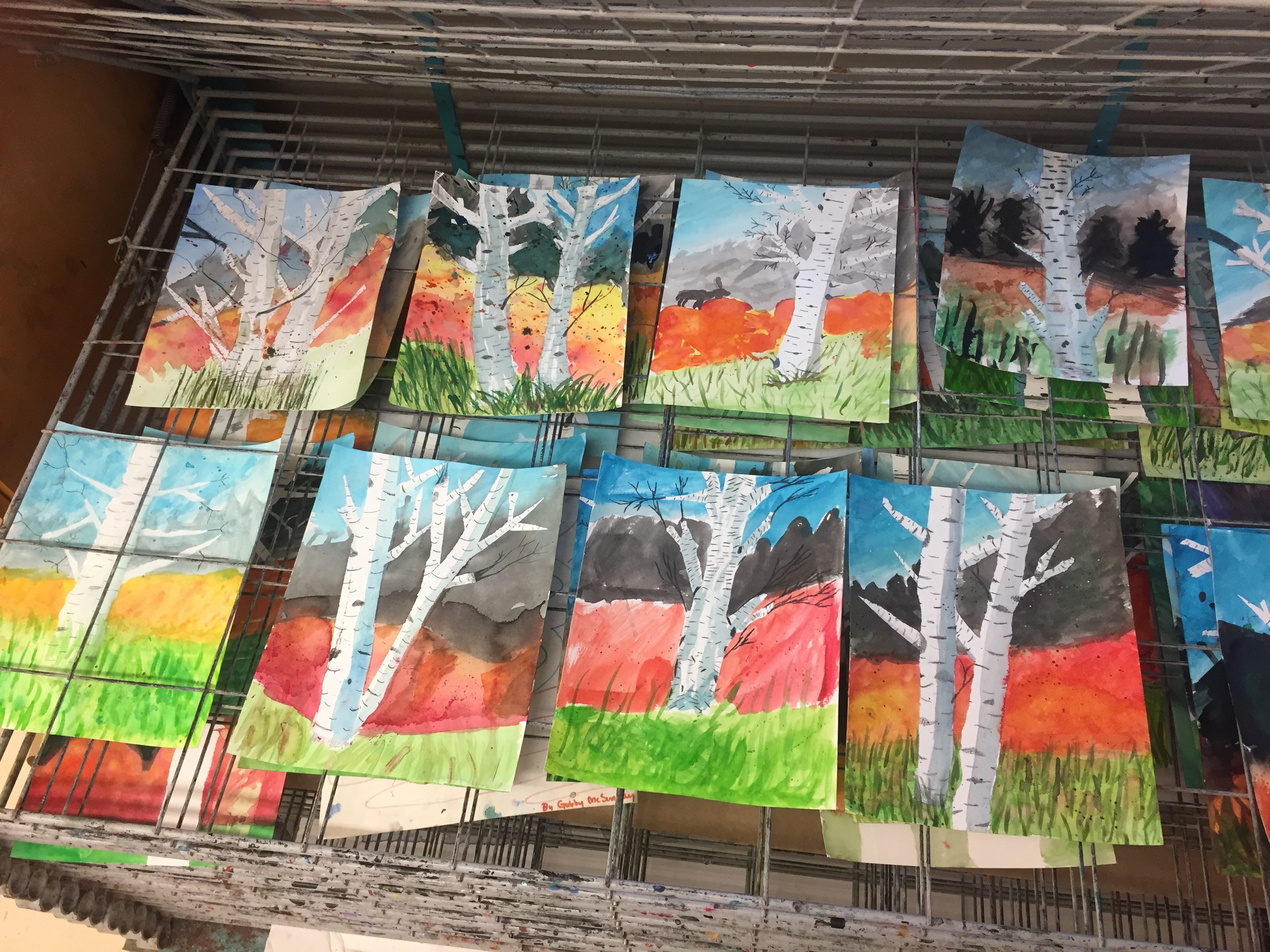 Masking Tape Birch Tree Paintings, “Fall Step-by-Step”