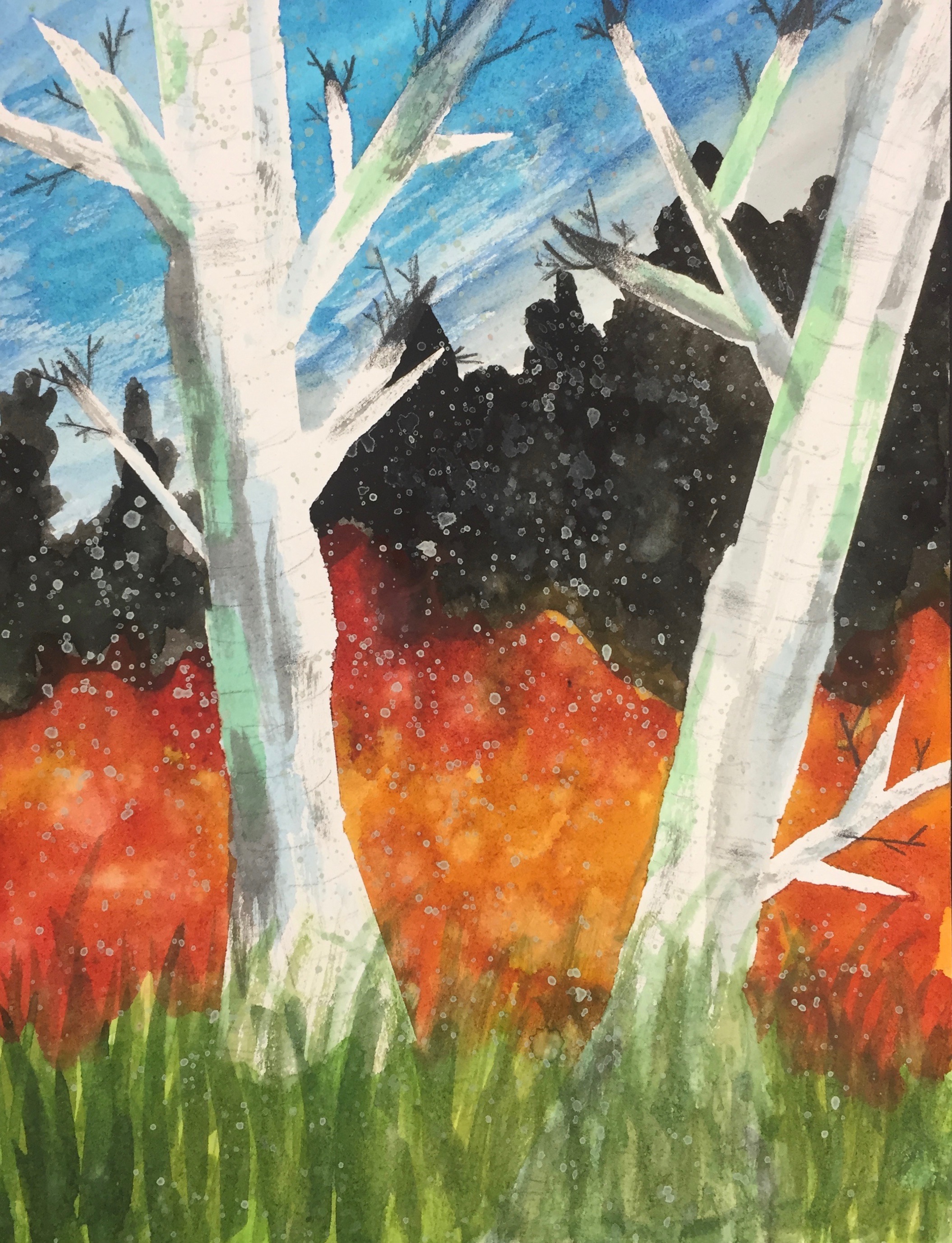 Masking Tape Birch Tree Paintings, “Fall Step-by-Step”