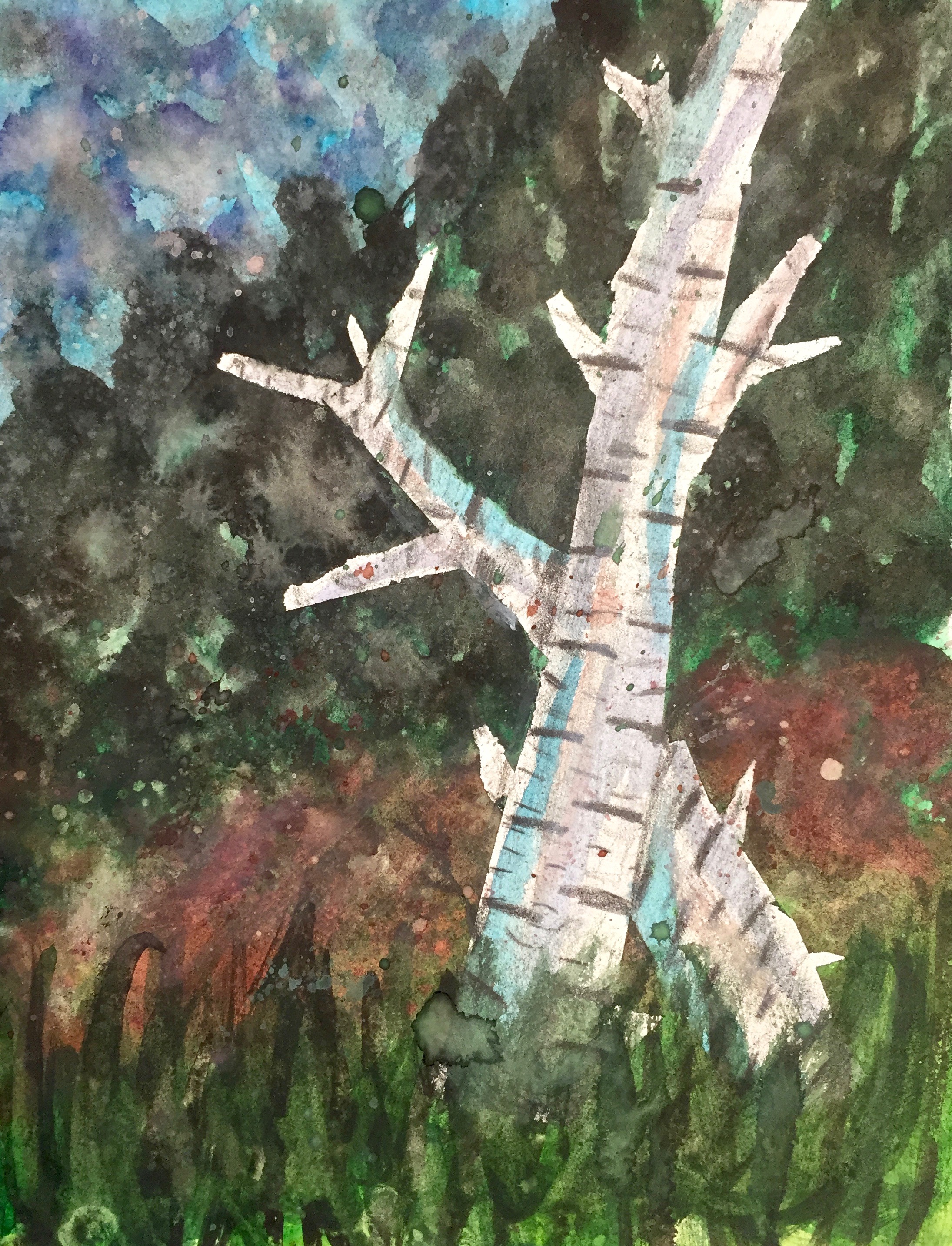 Masking Tape Birch Tree Paintings, “Fall Step-by-Step”