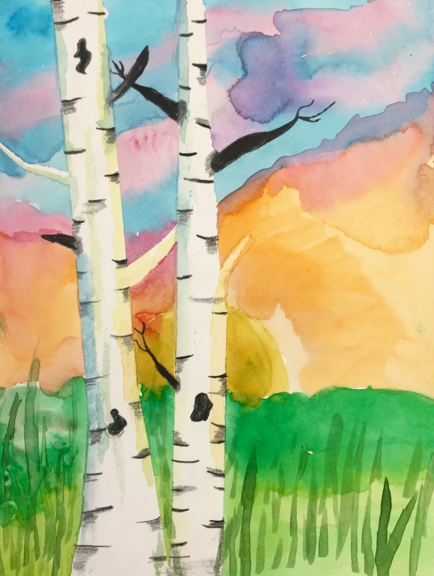 Masking Tape Birch Tree Paintings, “Fall Step-by-Step”
