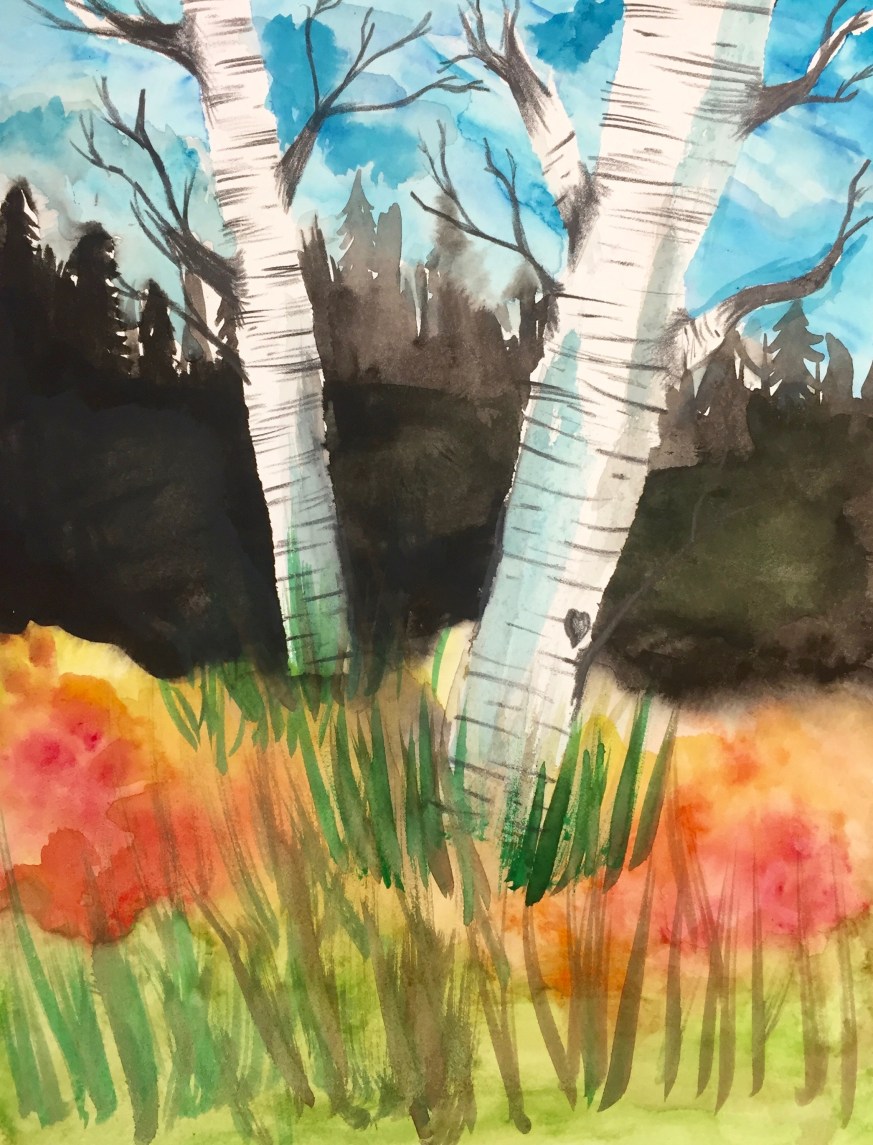Masking Tape Birch Tree Paintings, “Fall Step-by-Step”
