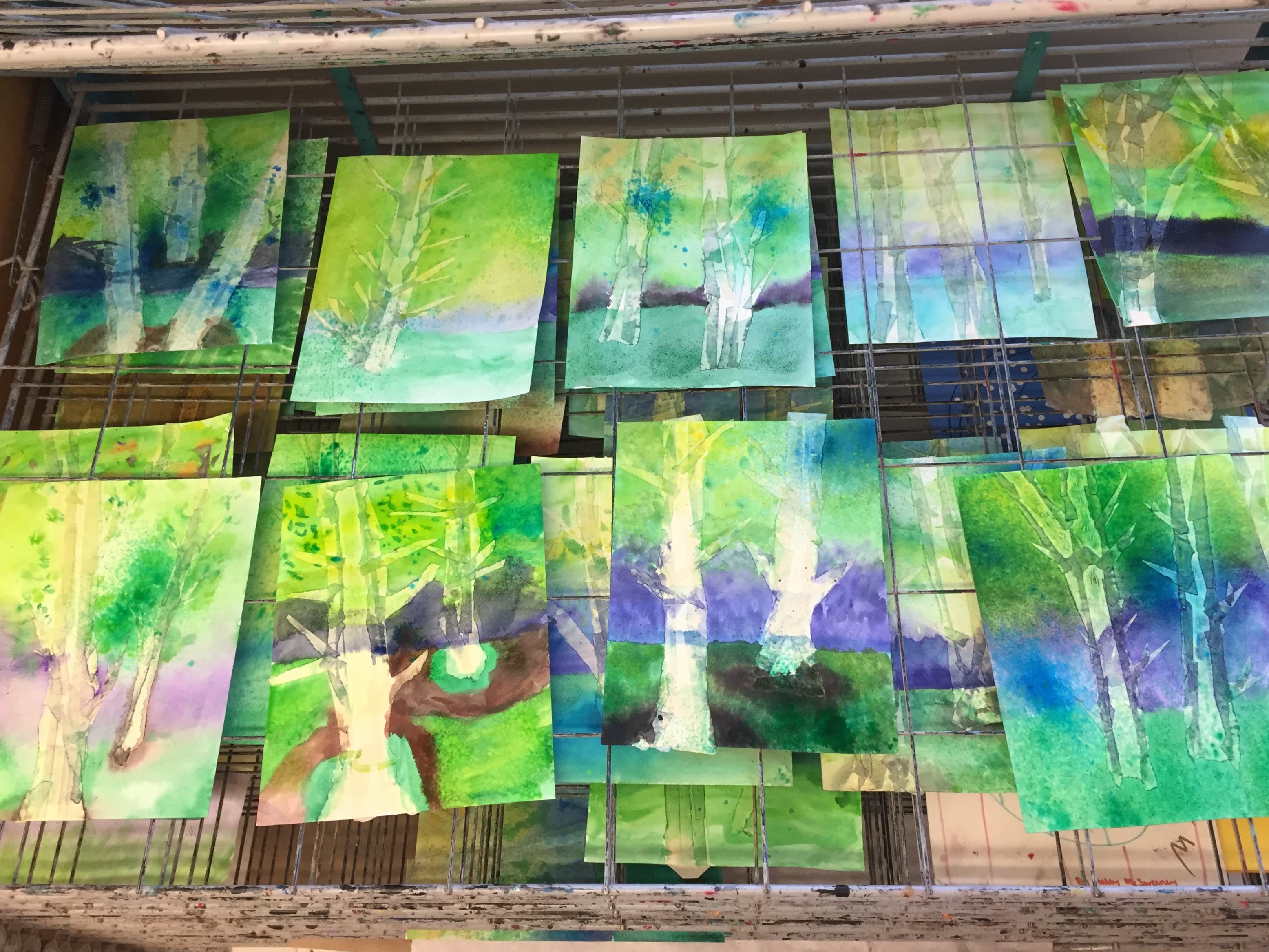 Masking Tape Birch Tree Paintings, “Fall Step-by-Step”