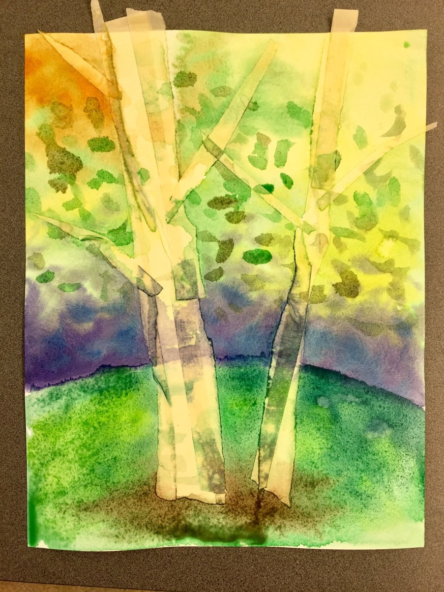 Masking Tape Birch Tree Paintings, “Fall Step-by-Step”
