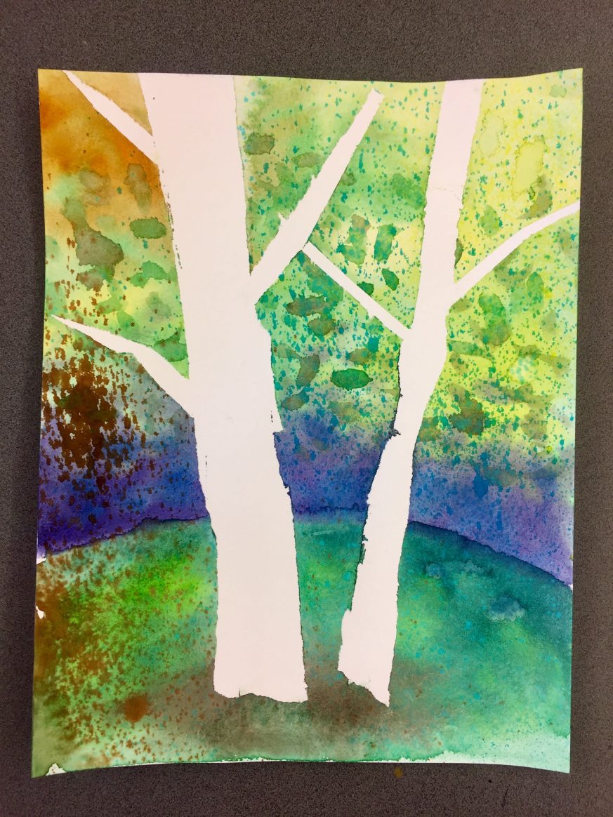 Masking Tape Birch Tree Paintings, “Fall Step-by-Step”