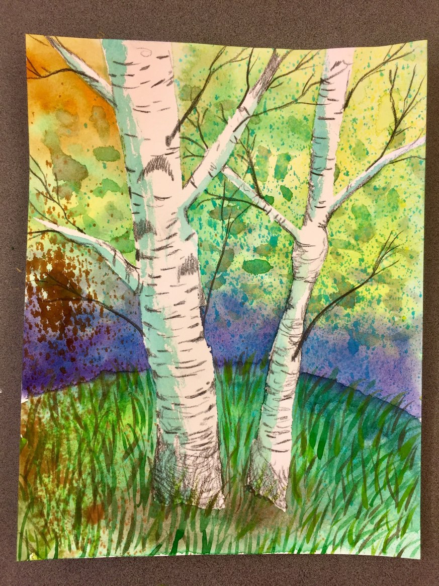 Masking Tape Birch Tree Paintings, “Fall Step-by-Step”