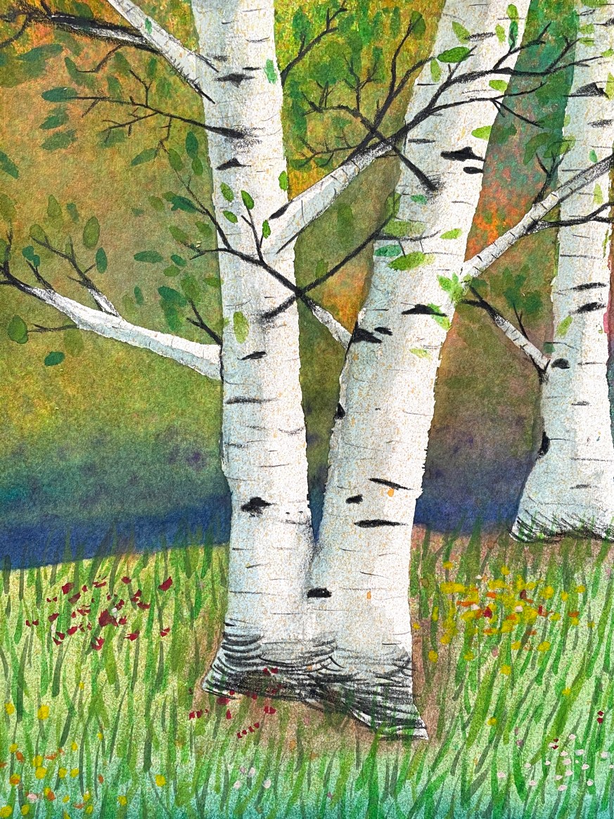 Masking Tape Birch Tree Paintings, “Fall Step-by-Step”