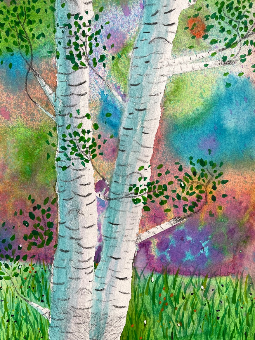 Masking Tape Birch Tree Paintings, “Fall Step-by-Step”