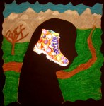 “Milagros” are small metal charms used in Mexico as prayer tokens or good luck talismans. The literal translation means “Miracles”. We used these symbols of faith and hope as the basis for this project. Each student created their own metal “Milagro” on aluminum tooling foil . The theme of the Milagro had to reflect a personal interest or hobby. The Milagro was fastened to a black paper silhouette of the artist, (which we traced using an overhead projector,) and was laid against a background of oil pastel color. The theme which originated with the Milagro had to be explored and continued further with the pastel work. Students were taught how to use “directional marks” with the pastel to emphasize forms in the color design, and were required to blend and mix colors as well.
