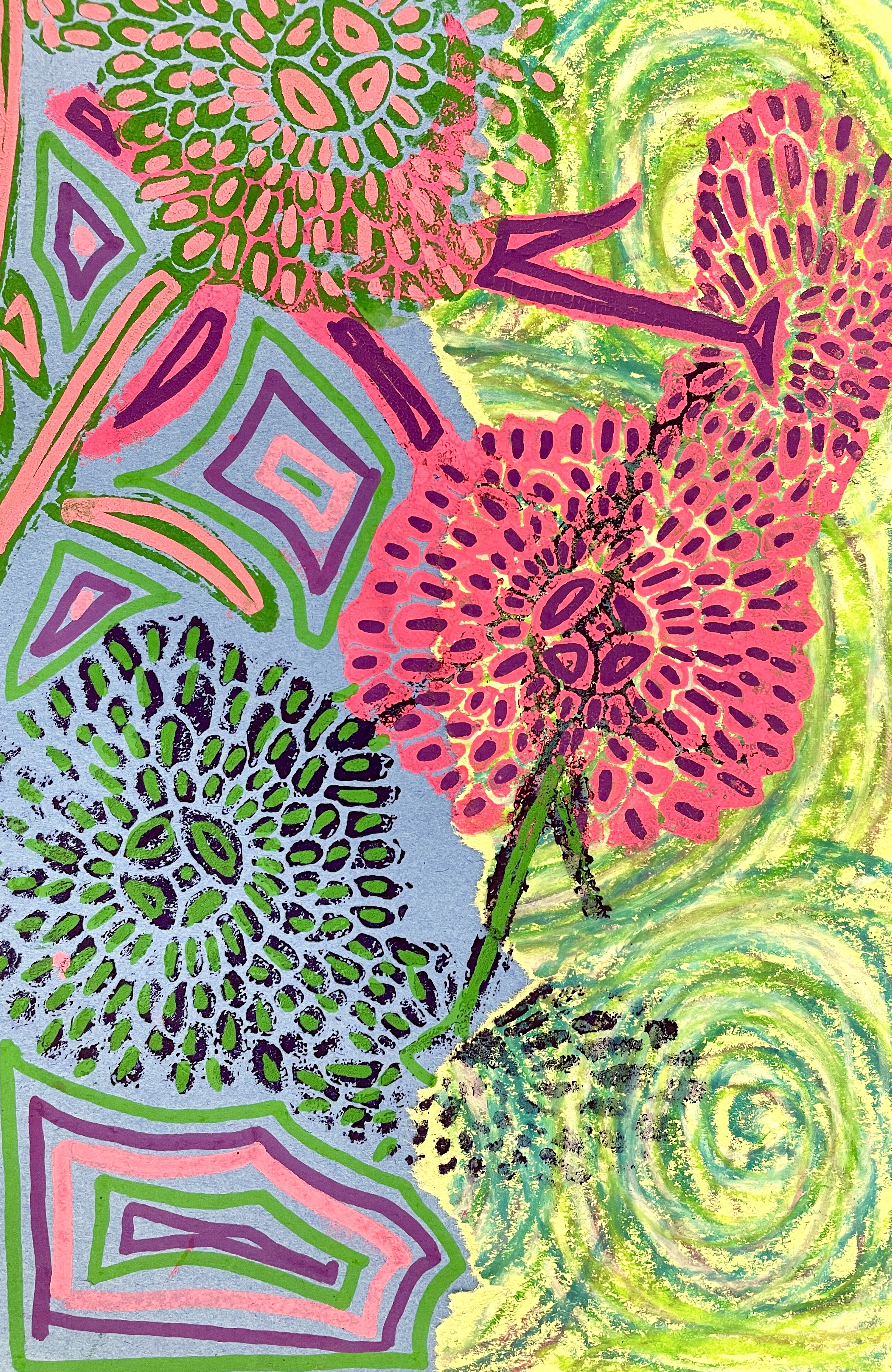 Radial Symmetry Prints on Oil Pastel