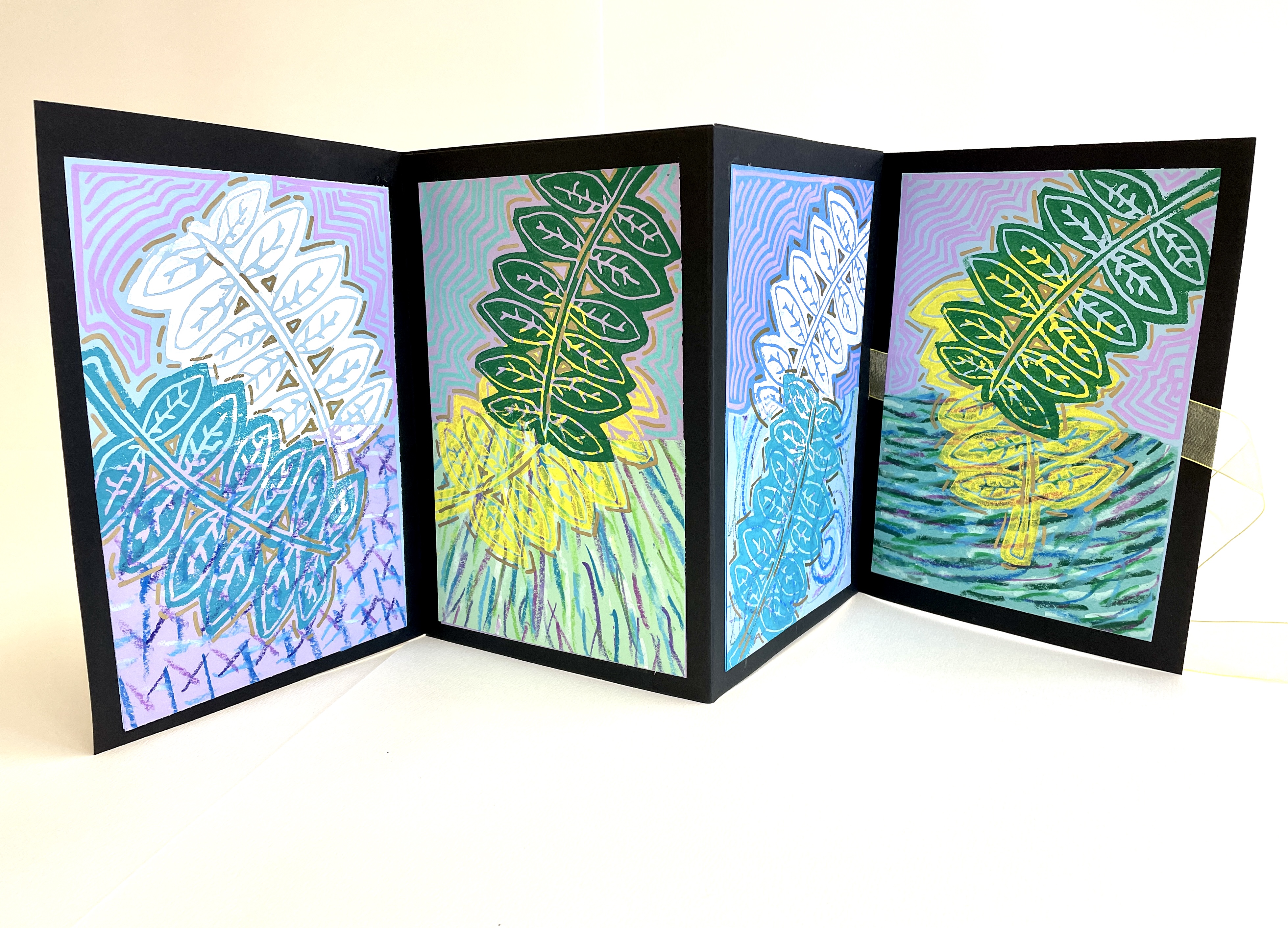 Botanical Oil Pastel and Watercolor Paintings