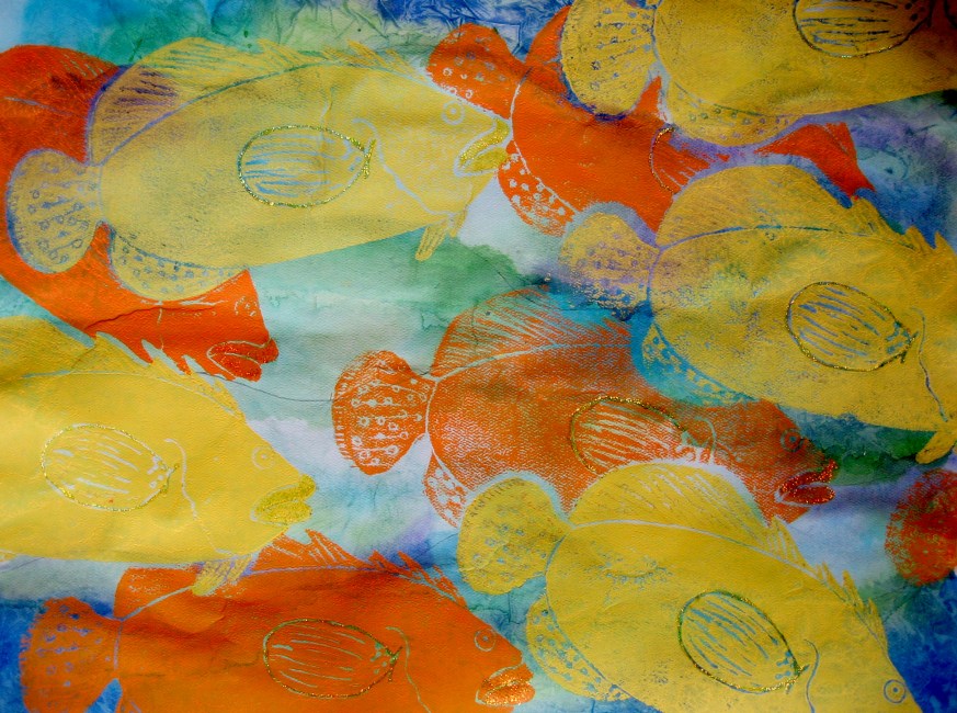 Watercolor and Crayon Resist Fish Paintings
