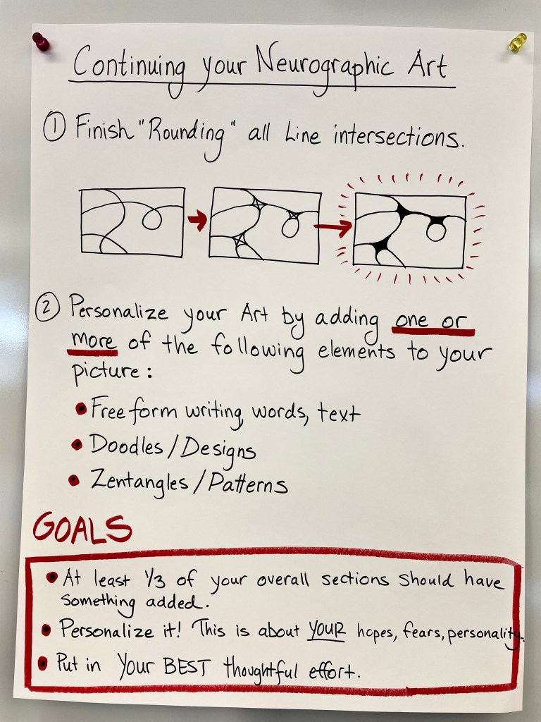 We also looked through THIS GOOGLE SLIDESHOW which my co-worker and I created. It affirms some of the key points from the video and incorporates a variety of Neurographic Art examples pulled from the internet.