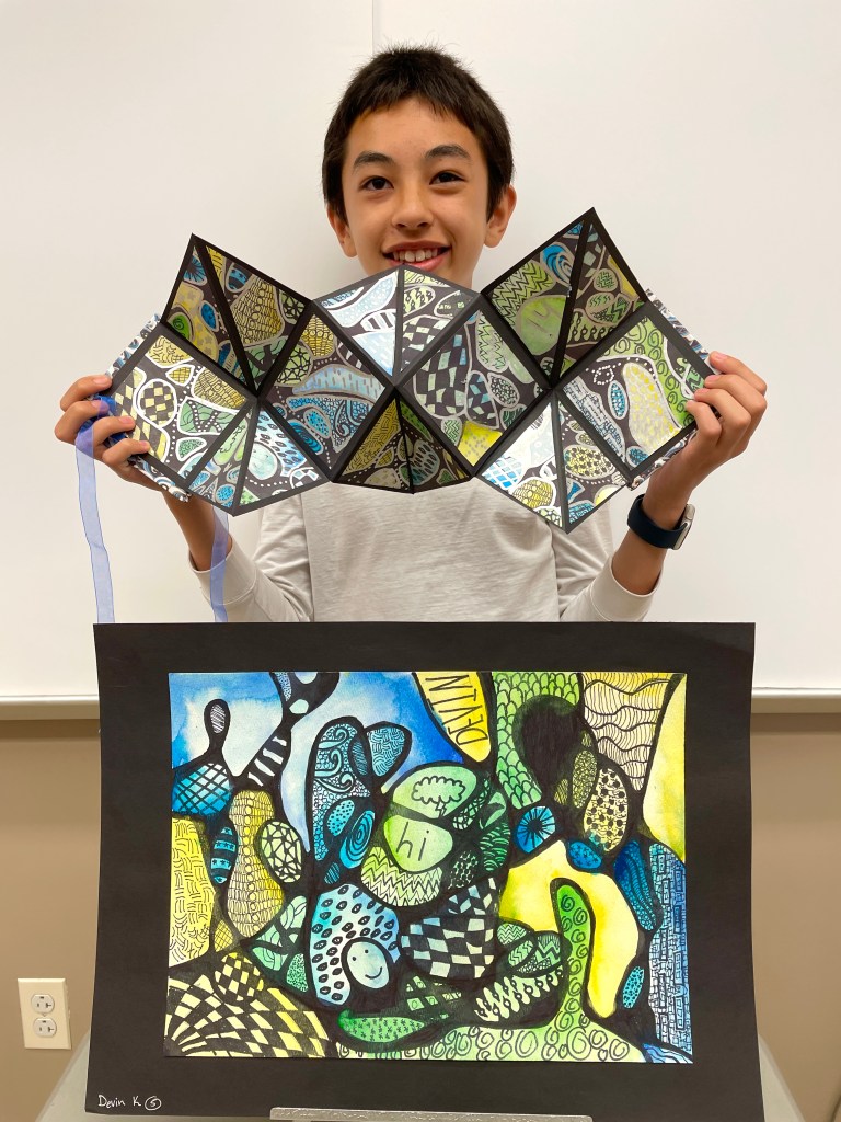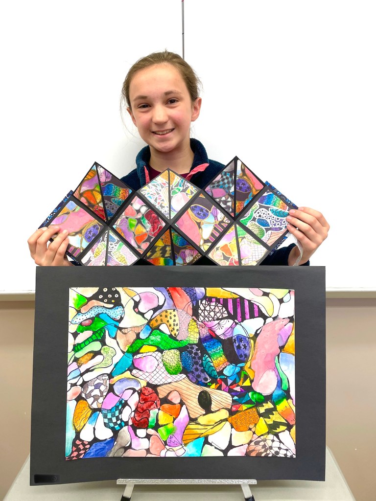 We made the art with sharpie and water colour. I am planning on colour photocopying these. I took a black piece of paper the same size and folded the explosion booklet, as a trial. But the explosion booklet is a lot smaller than the original art. I know the children will cut out triangles and squares to go in the explosion book so their whole art piece won’t be used, but should the explosion book start with a bigger piece of paper than the original artwork?? Hope that makes sense!!!!!!