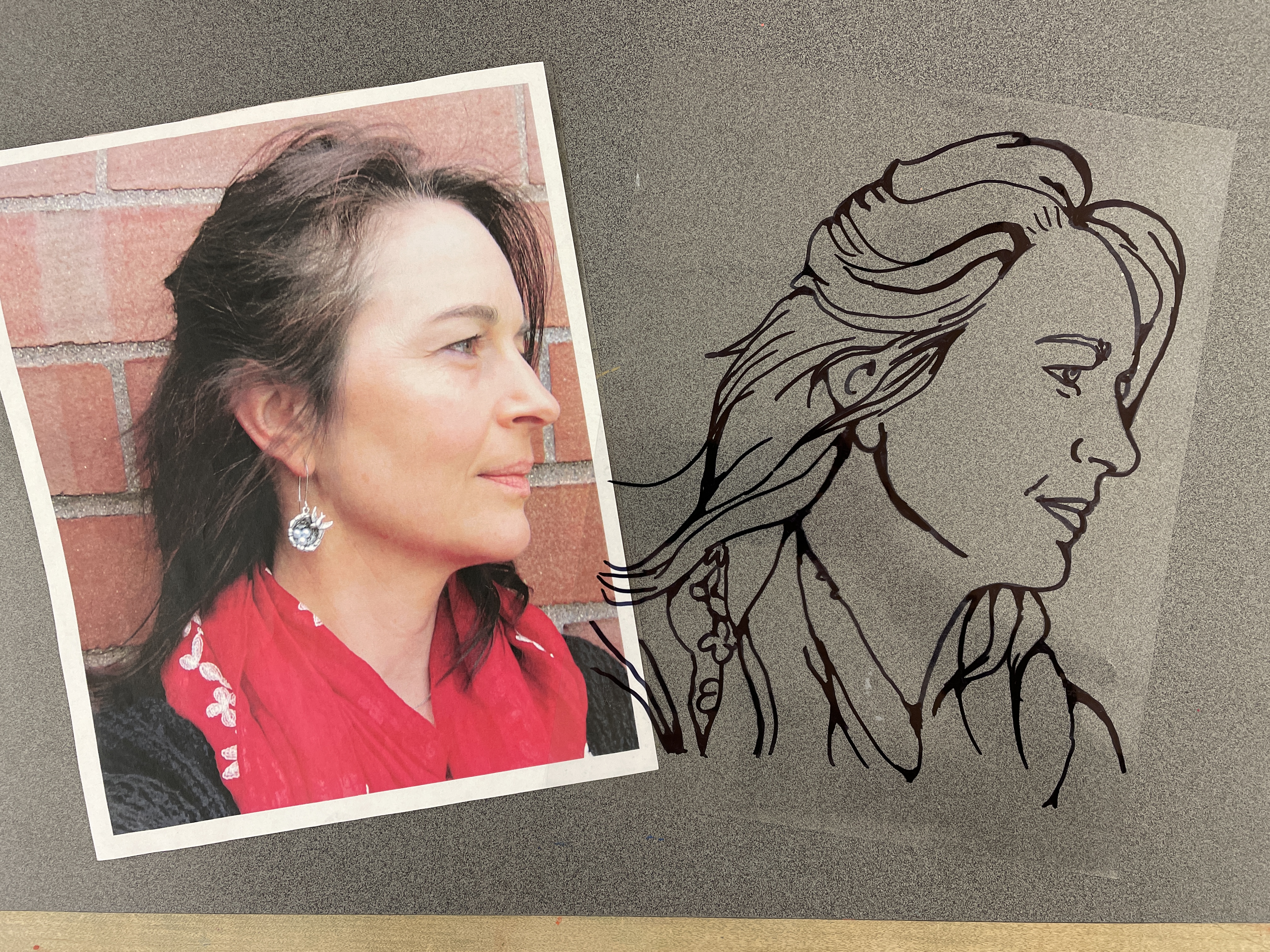 Ready, set, POSE! I use my iPhone to take photos of my students. I usually do this on a day during which they are intently engaged with another lesson, and pull one or two students at a time into the hall, where they can feel a bit less self-conscious. They have the freedom to pick how they want to pose and whether they wanted to express an emotion through their pose. We printed out 8” by 10” photos and students traced the main contours of their face and body onto acetate with Sharpie.