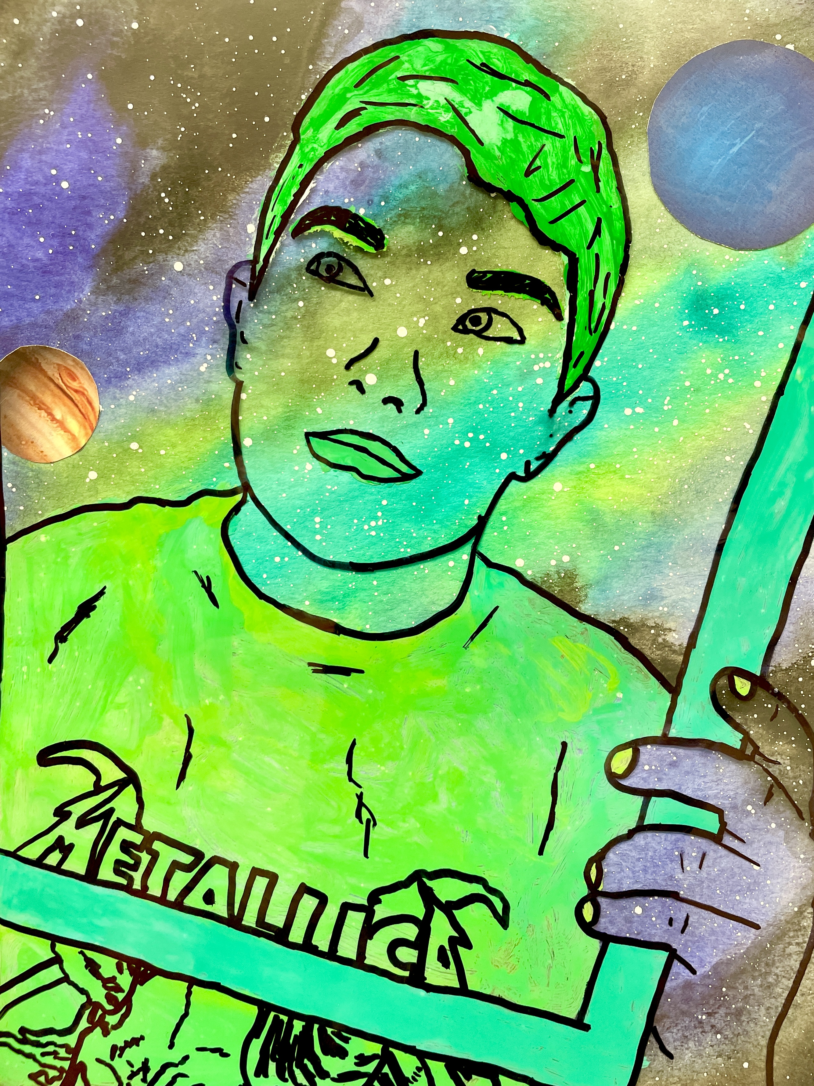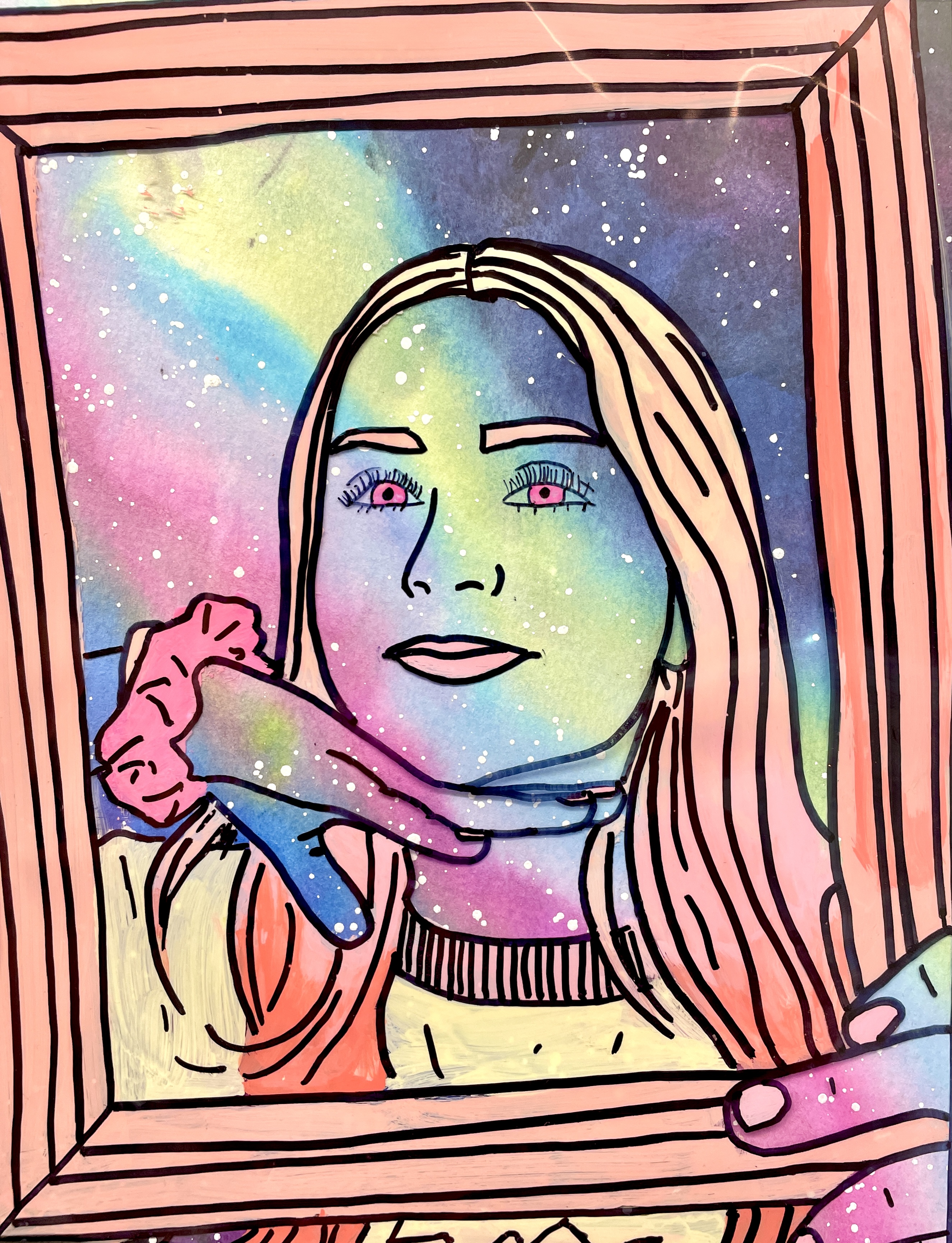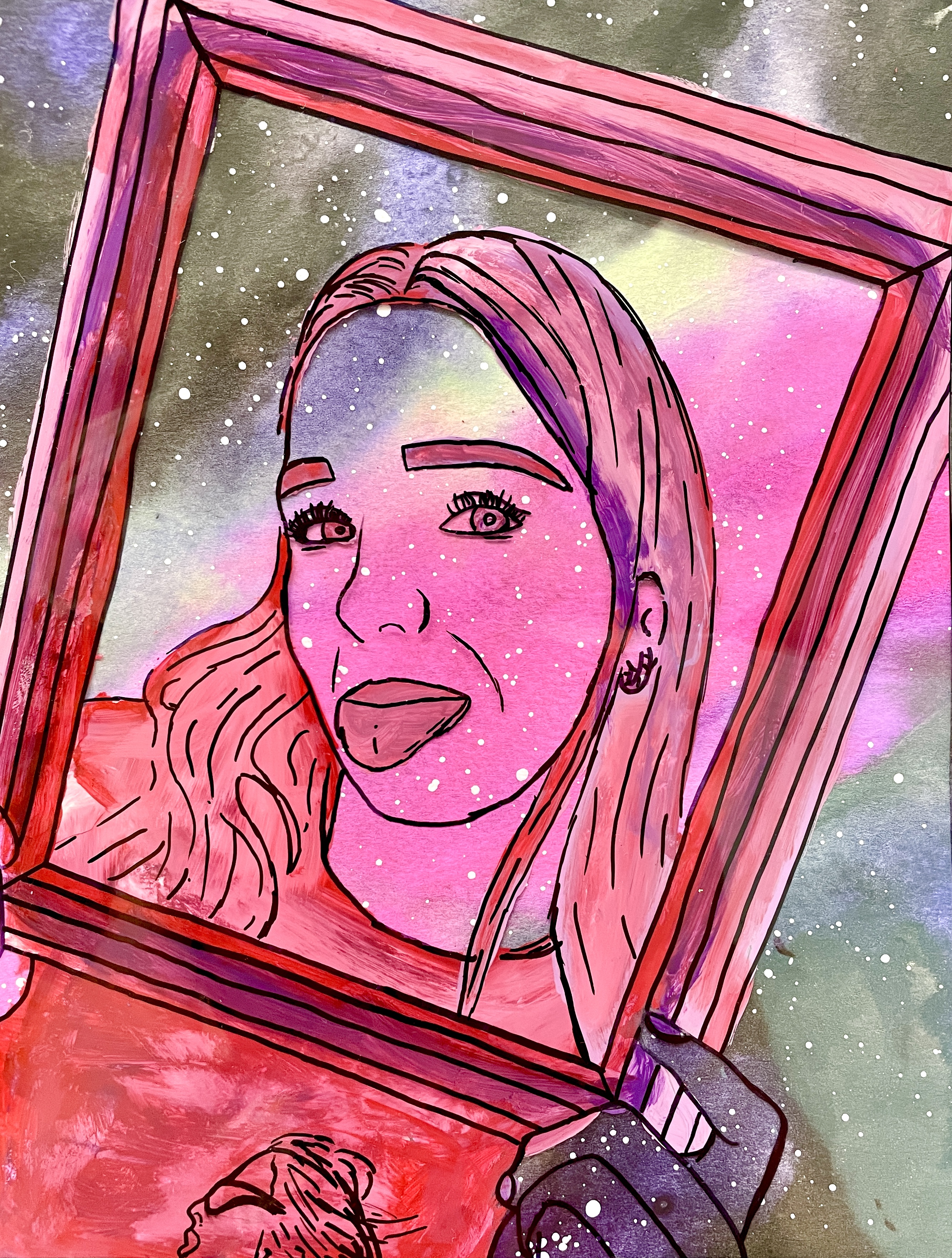 Aaaaand, just to always keep this interesting, I recently used galaxy watercolor paintings as a background for a recent batch of Acetate Self Portraits! Click HERE to learn how we did the galaxy paintings for these out-of-this-world masterpieces!