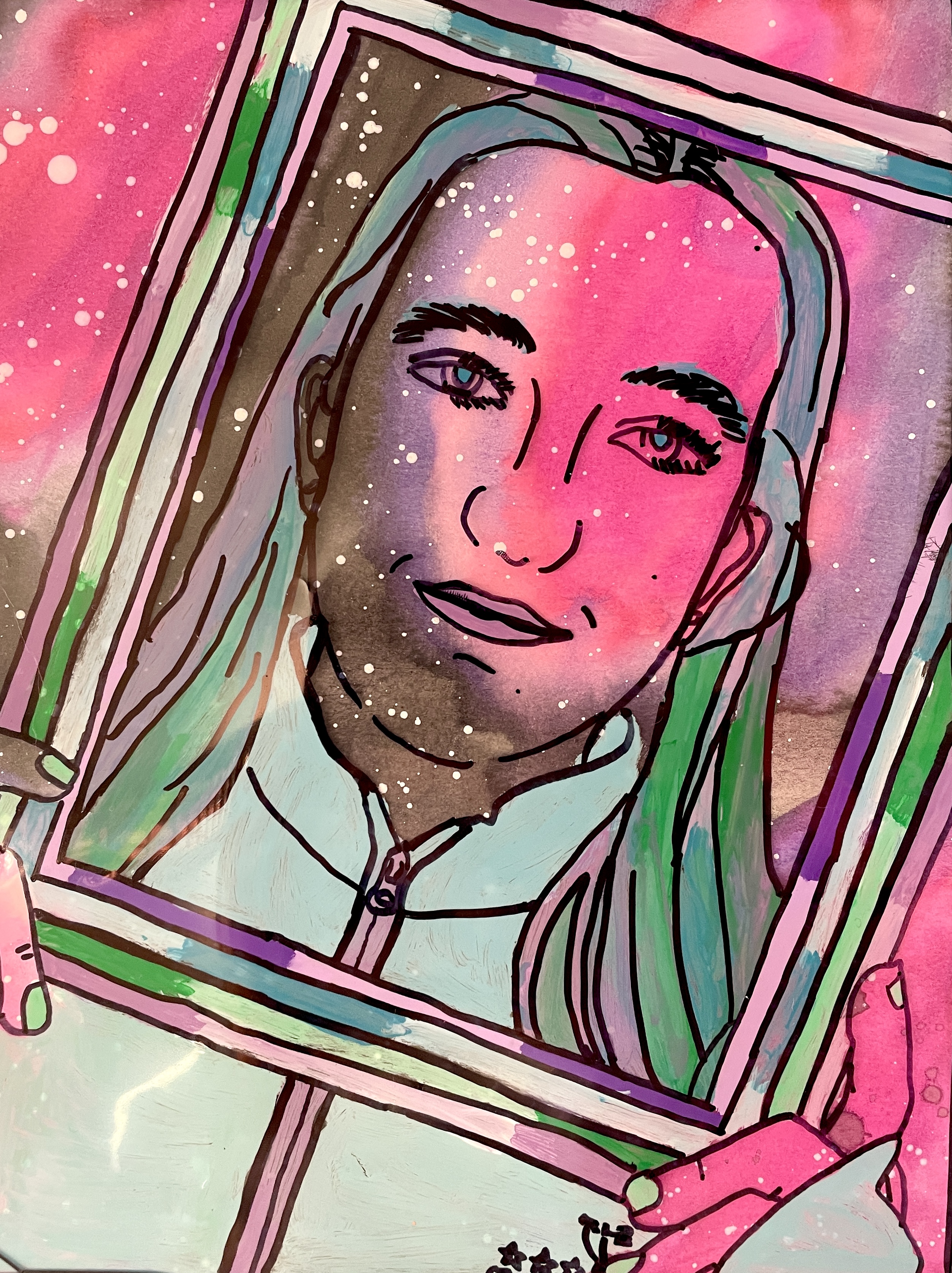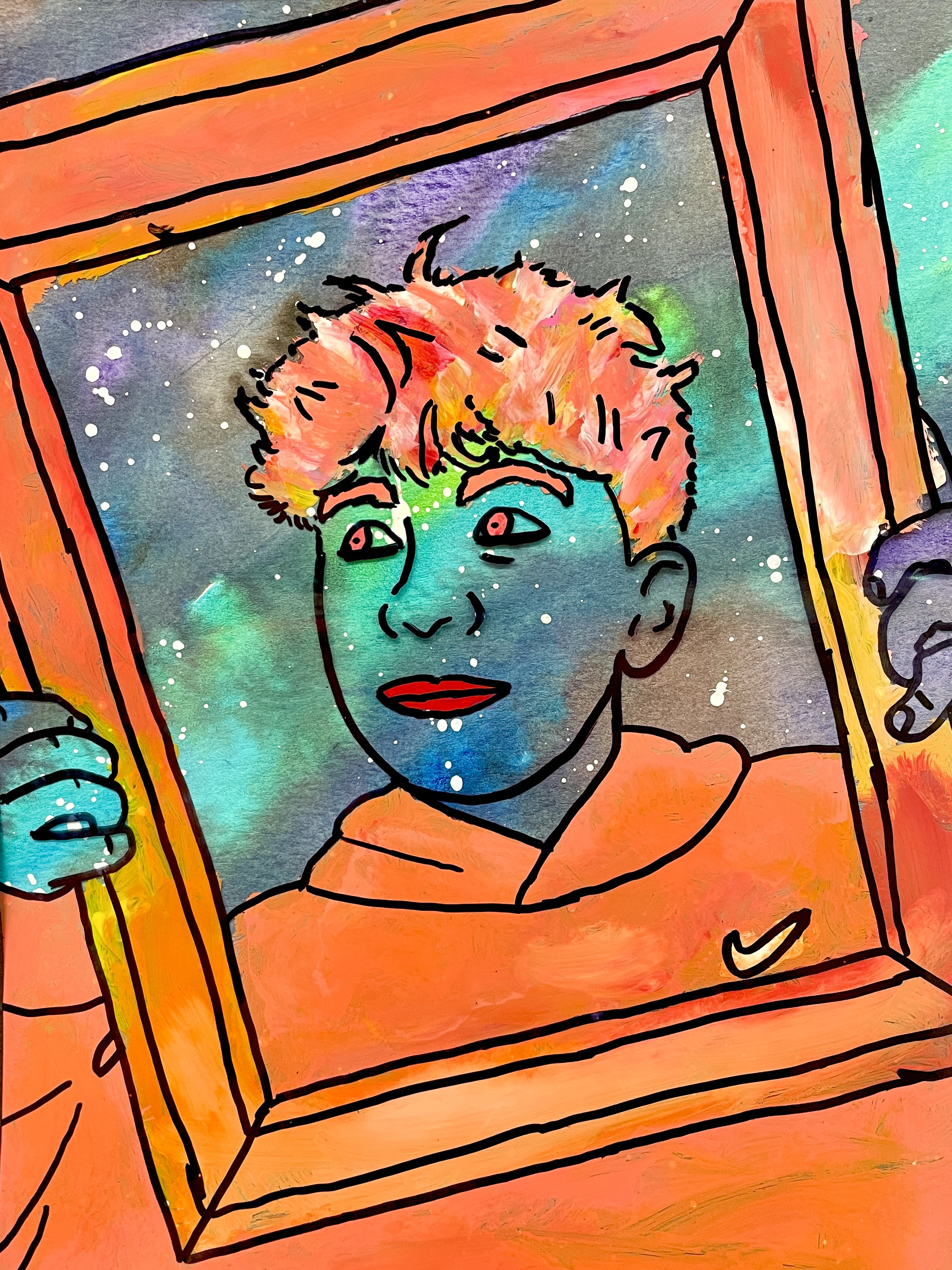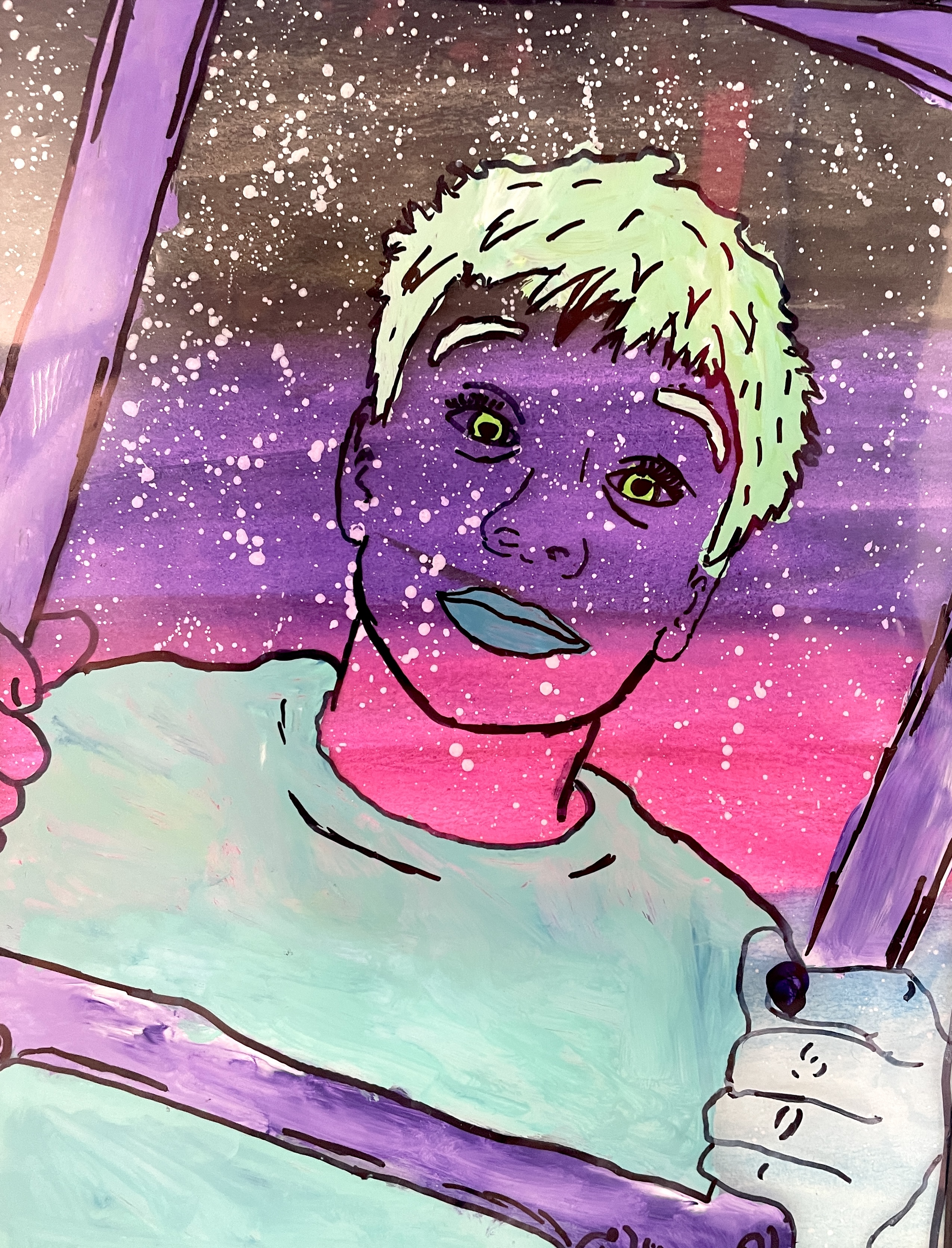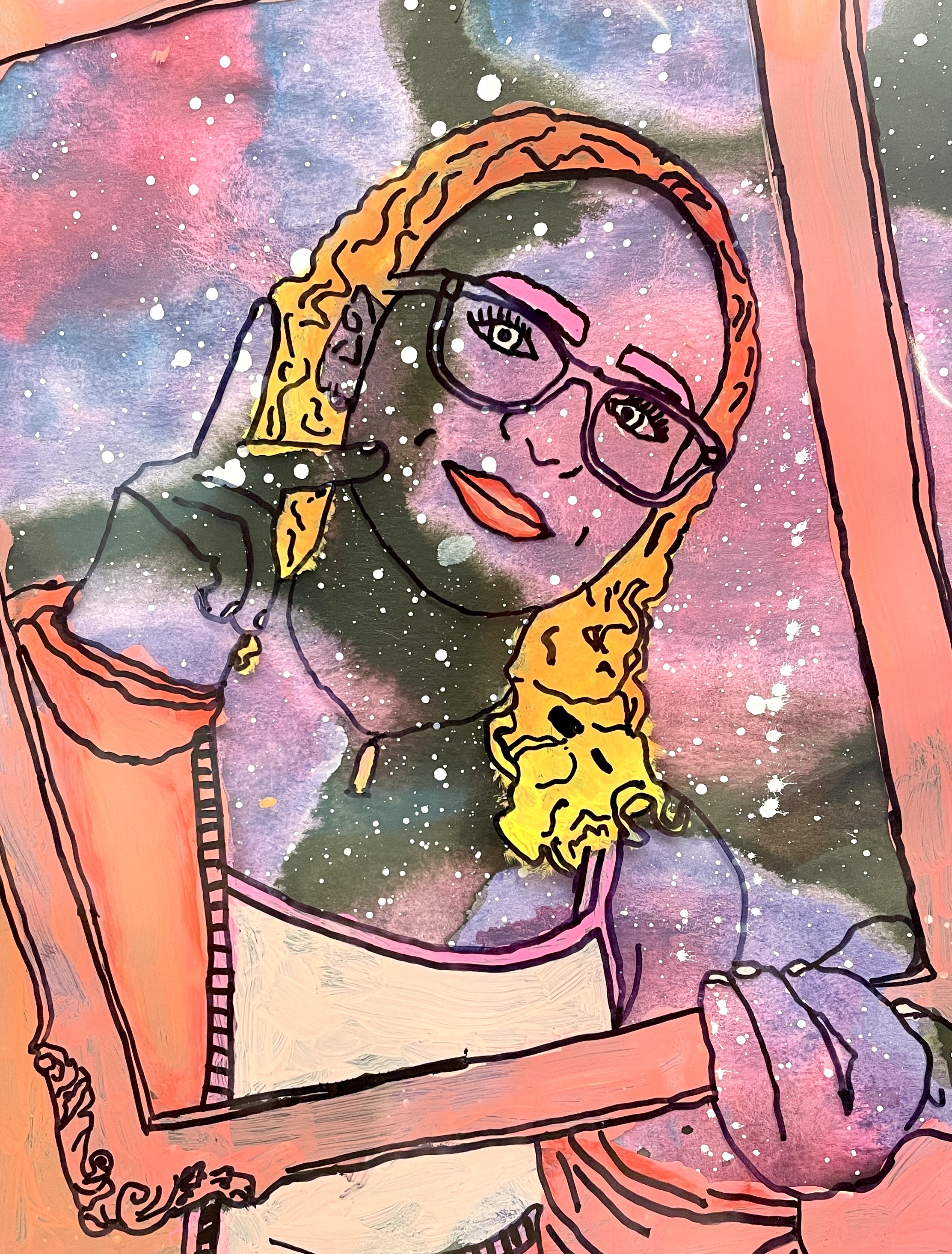 Aaaaand, just to always keep this interesting, I recently used galaxy watercolor paintings as a background for a recent batch of Acetate Self Portraits! Click HERE to learn how we did the galaxy paintings for these out-of-this-world masterpieces!