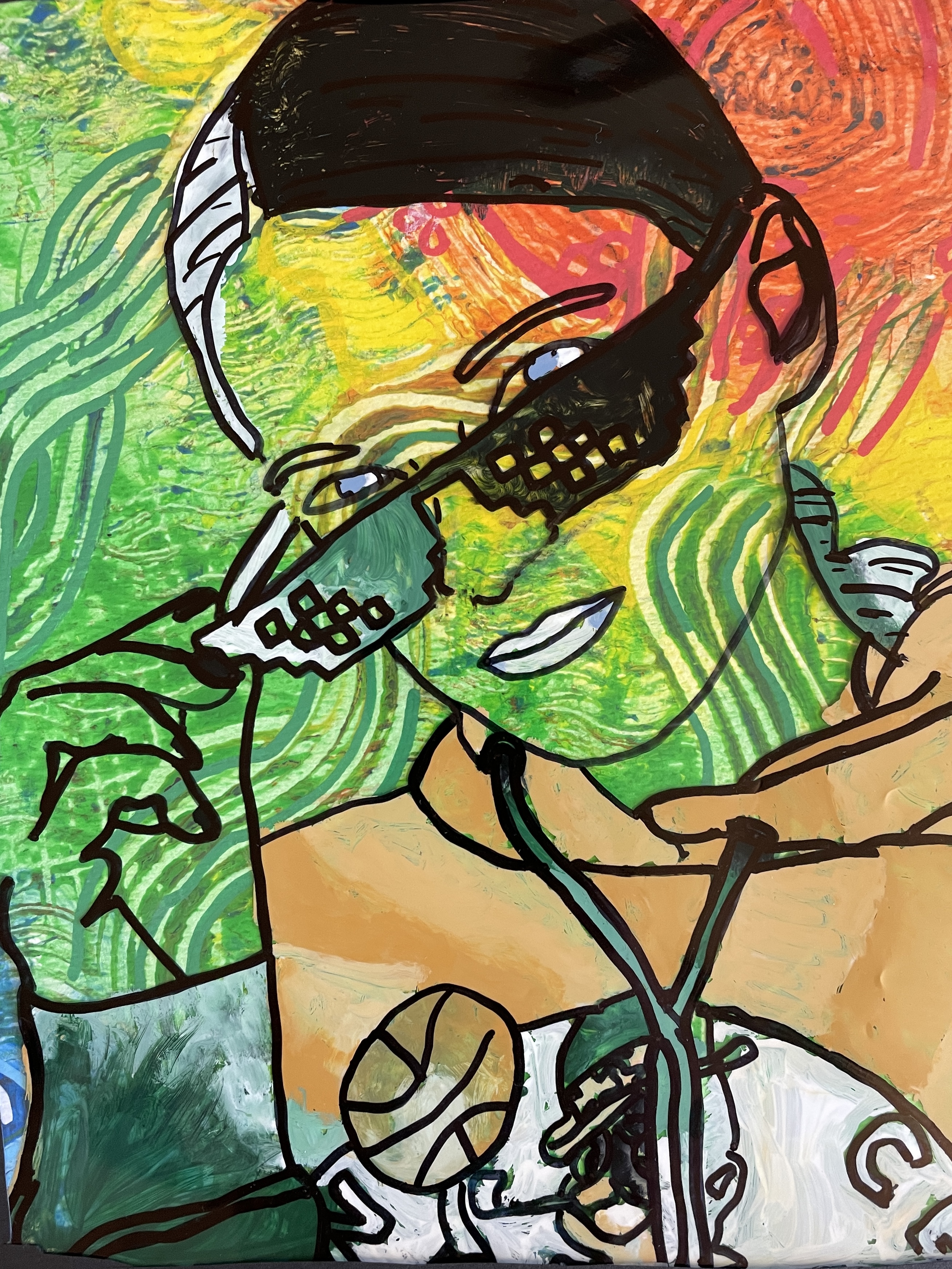 Reverse Painting Acetate Self Portraits