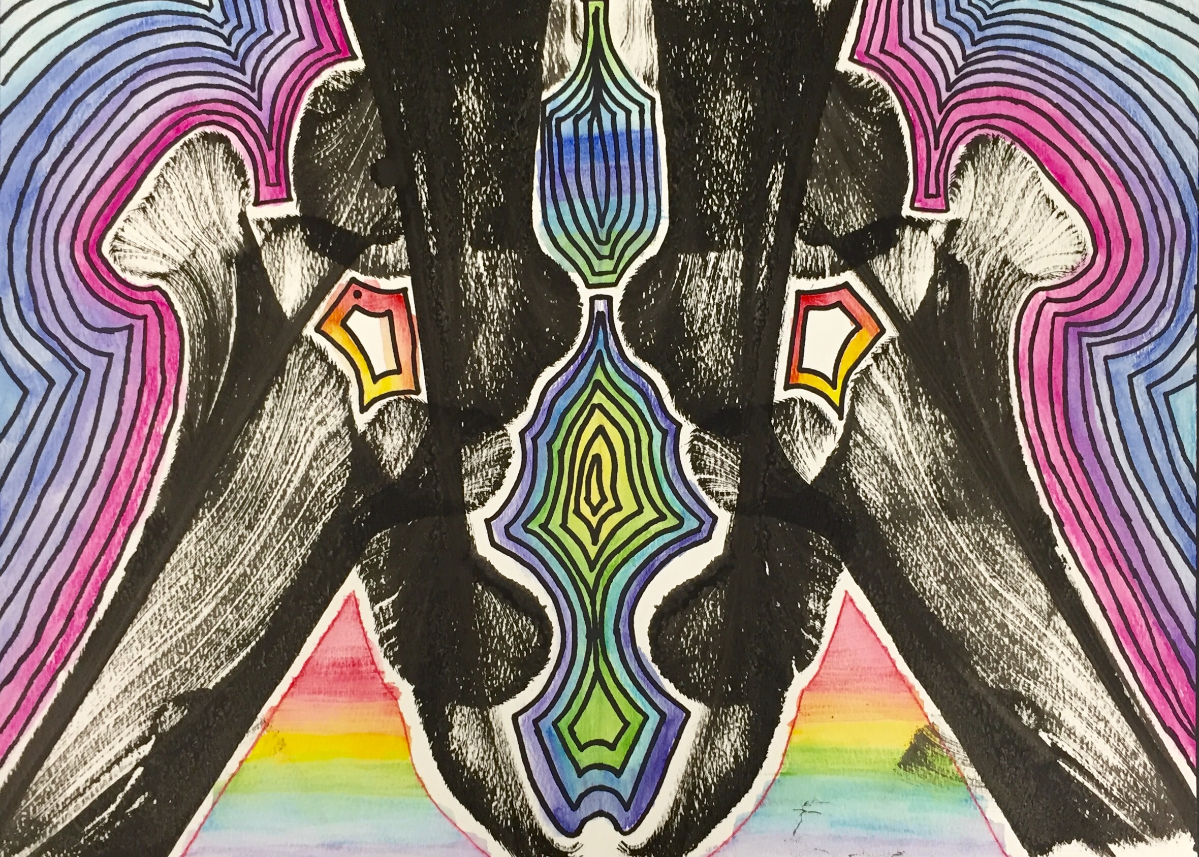 Radial Symmetry Prints on Oil Pastel