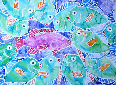 Watercolor and Crayon Resist Fish Paintings